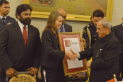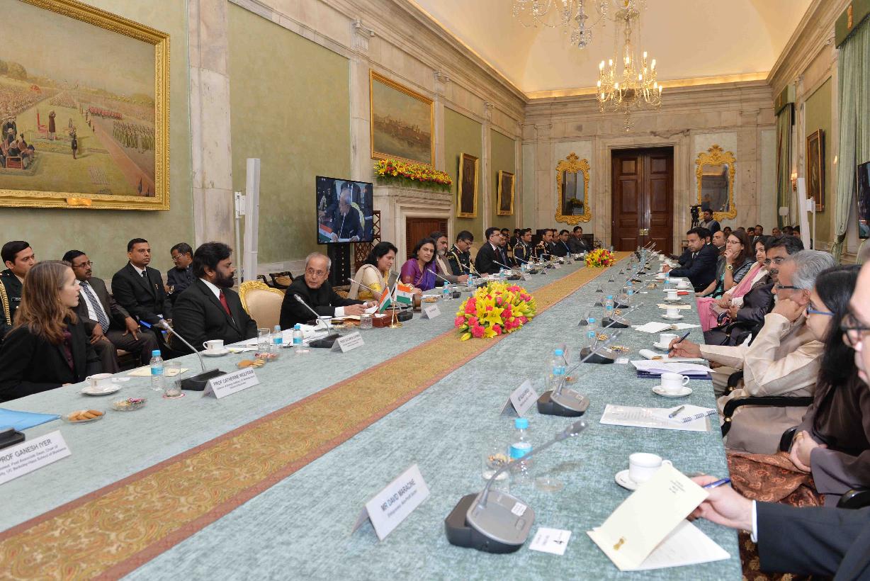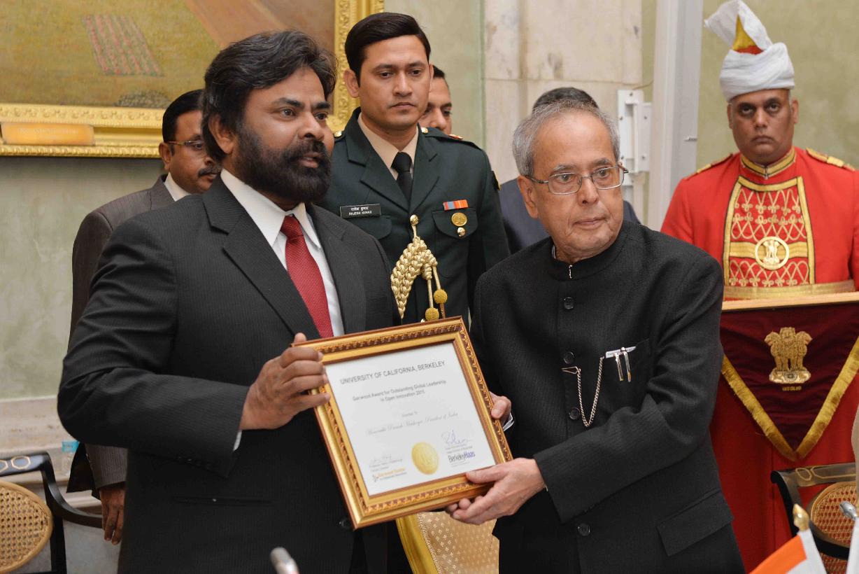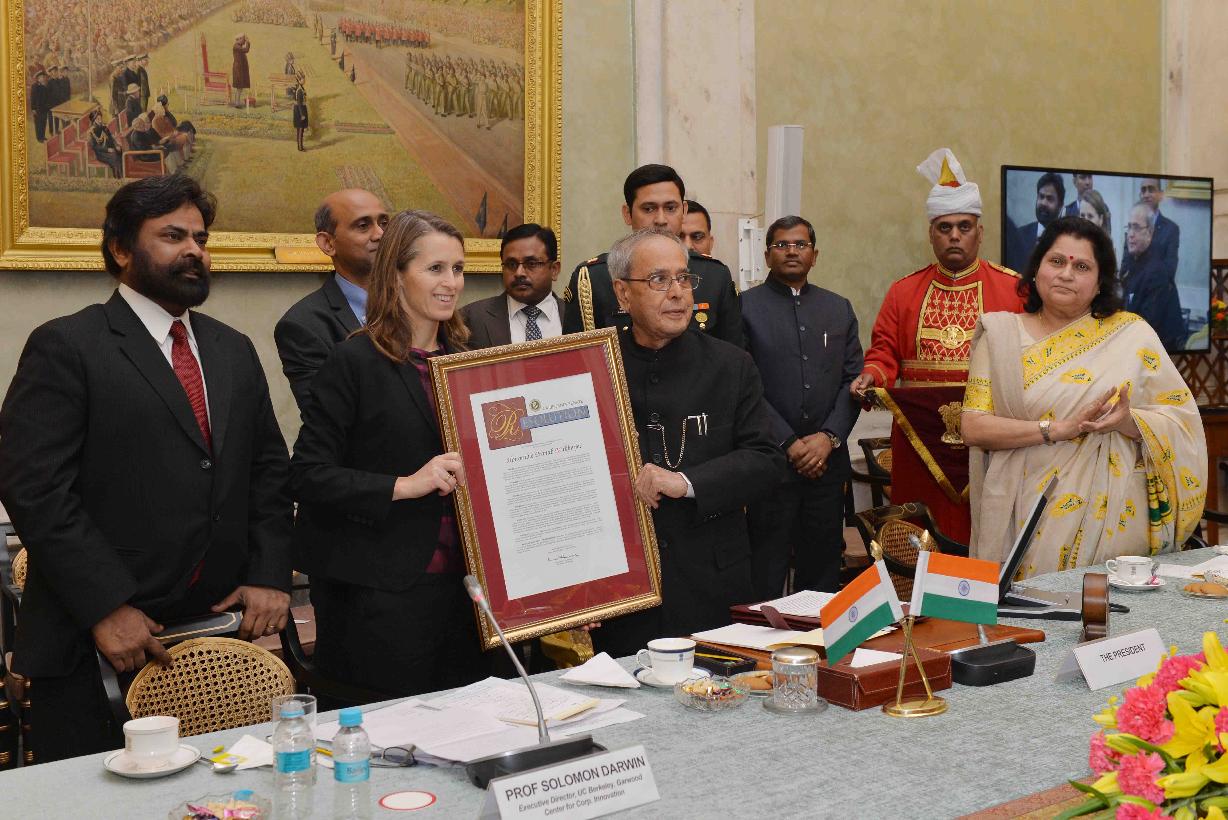 | Caption: | The President of India, Shri Pranab Mukherjee receiving Garwood Award for 'Outstanding Global Leader in Open Innovation' from UC Berkeley Haas School of Business, at Rashtrapati Bhavan on December 17, 2015. |