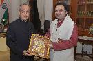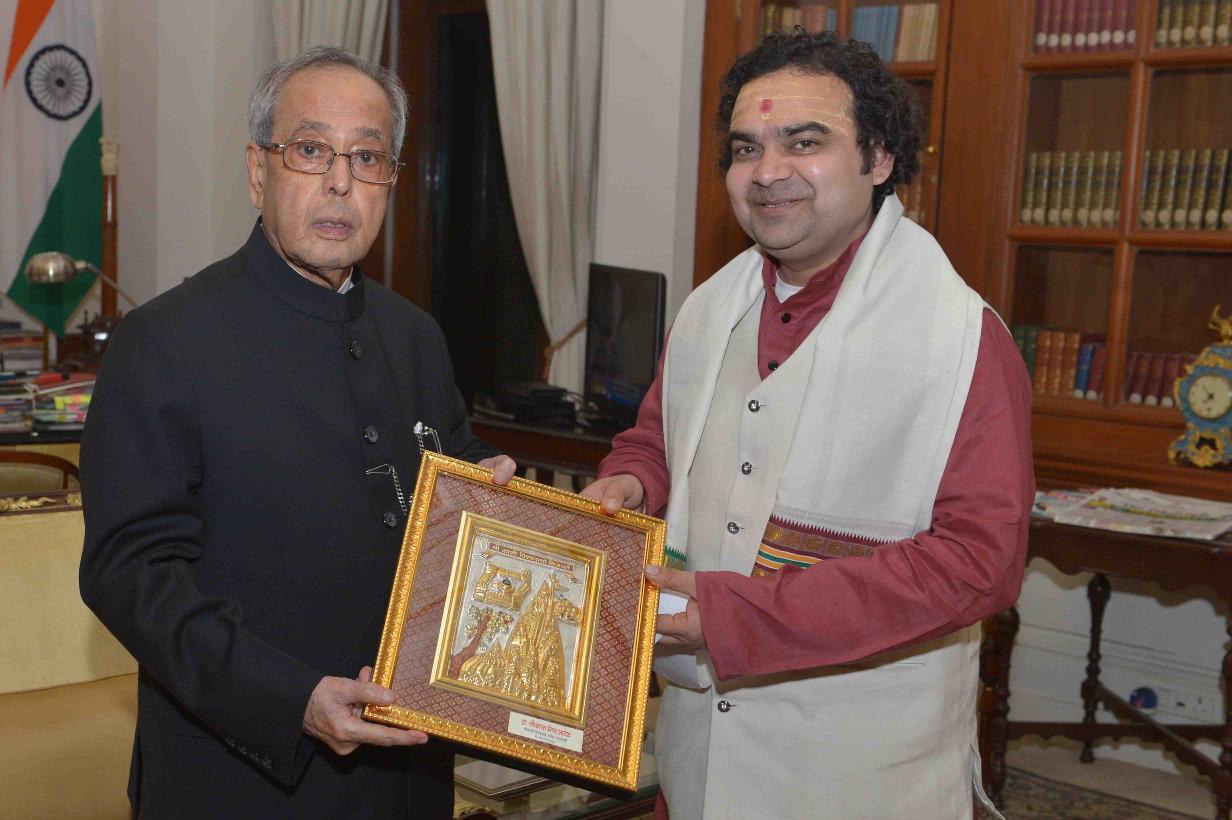 | Caption: | The President of India, Shri Pranab Mukherjee meeting with Dr. Shrikant Mishra, Head Priest, Kashi Vishwanath Temple, Varanasi, at Rashtrapati Bhavan on January 19, 2016. |