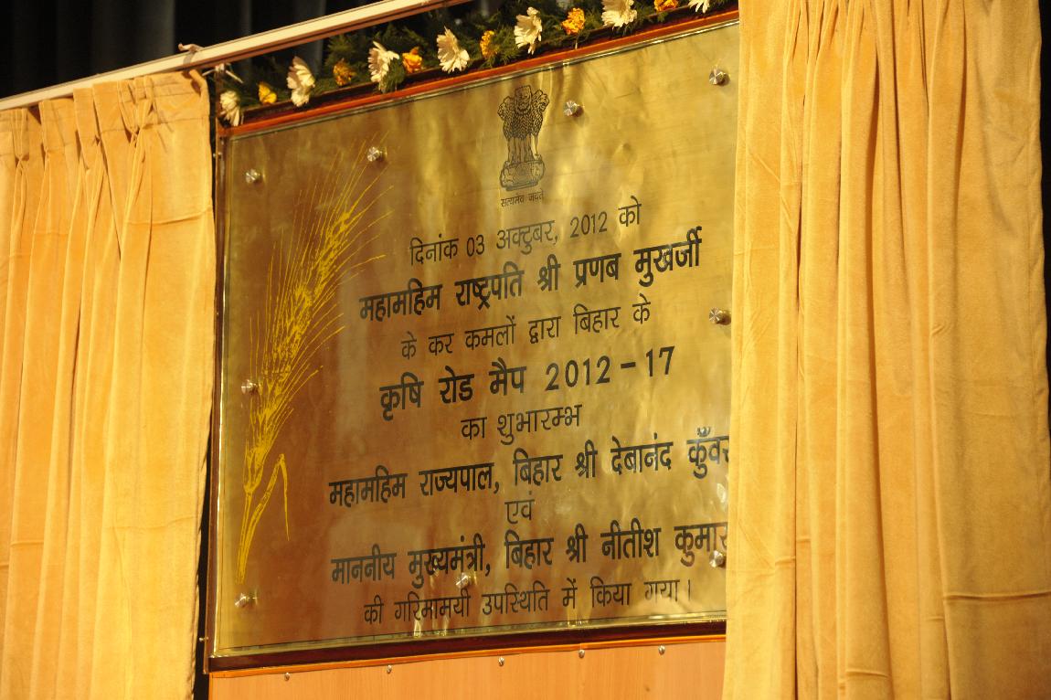 | Caption: | The President of India, Shri Pranab Mukherjee Inaugurating The Launching Ceremony of Agriculture Road Map of Bihar (2012-2017) on October 03, 2012 |