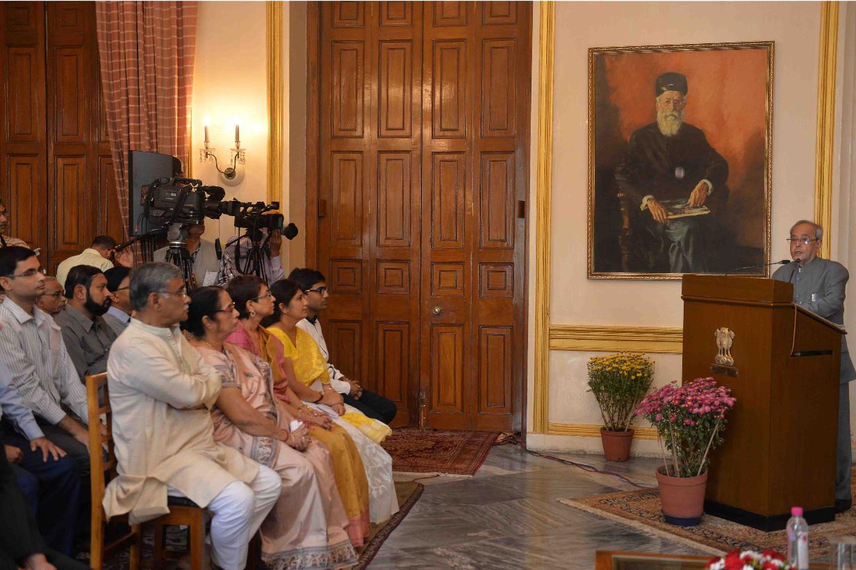 | Caption: | The President of India, Shri Pranab Mukherjee delivering the Debranjan Mukherjee Memorial Lecture, in Kolkata, West Bengal on December 13, 2015. |