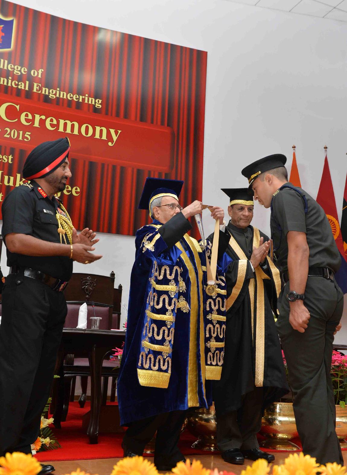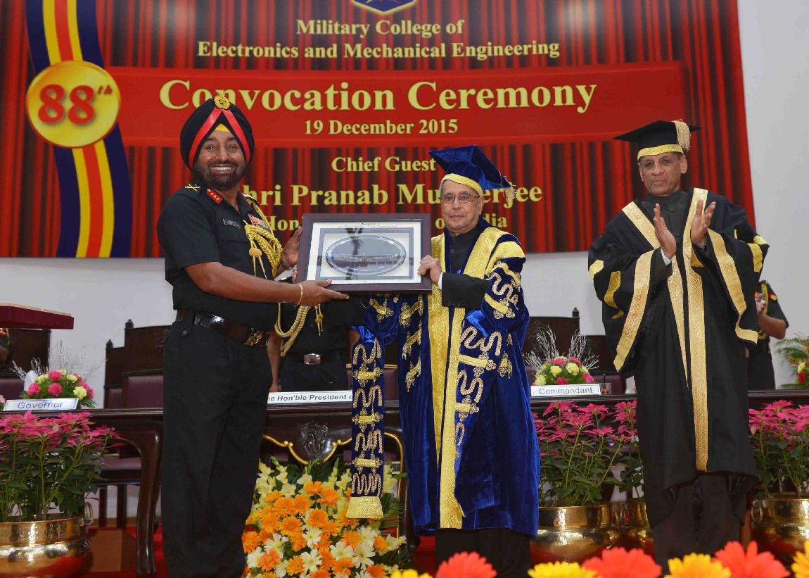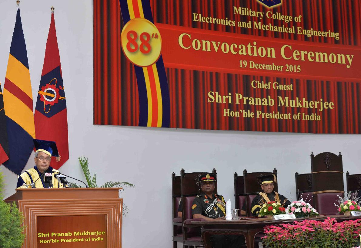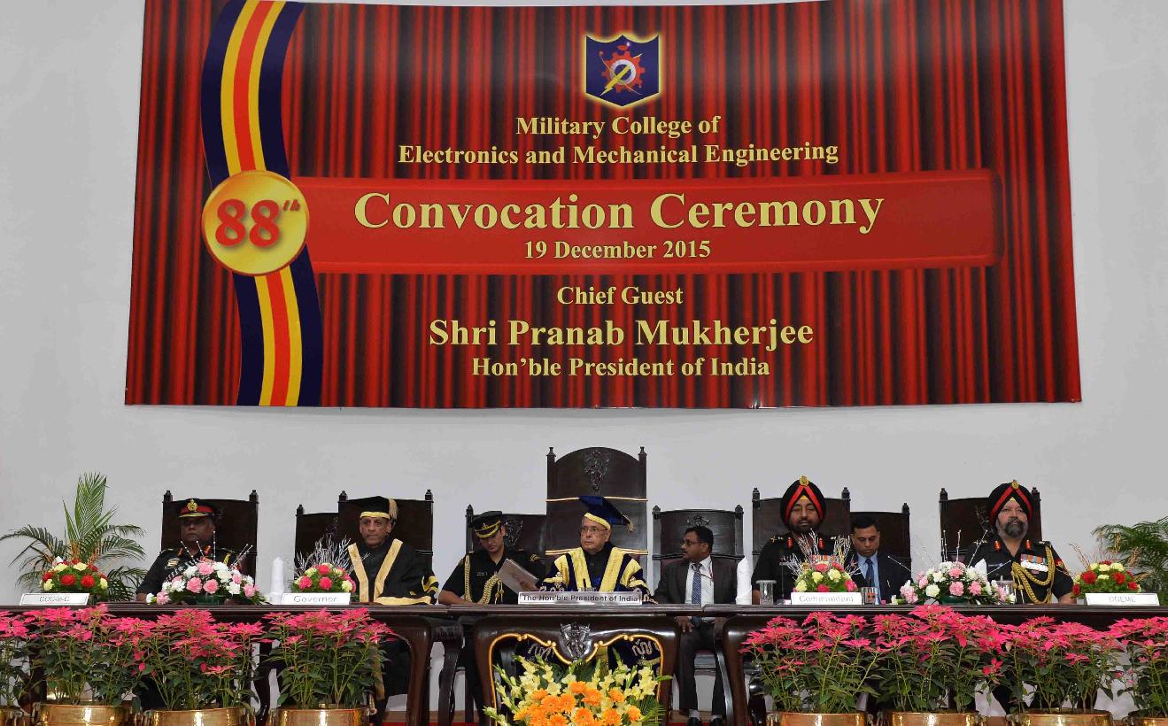 | Caption: | The President of India, Shri Pranab Mukherjee attending the Convocation Ceremony of the 96th Degree Engineering and 24th Technical Entry Scheme courses of Military College of Electronics and Mechanical Engineering, at Secunderabad on December 19, 2015. |