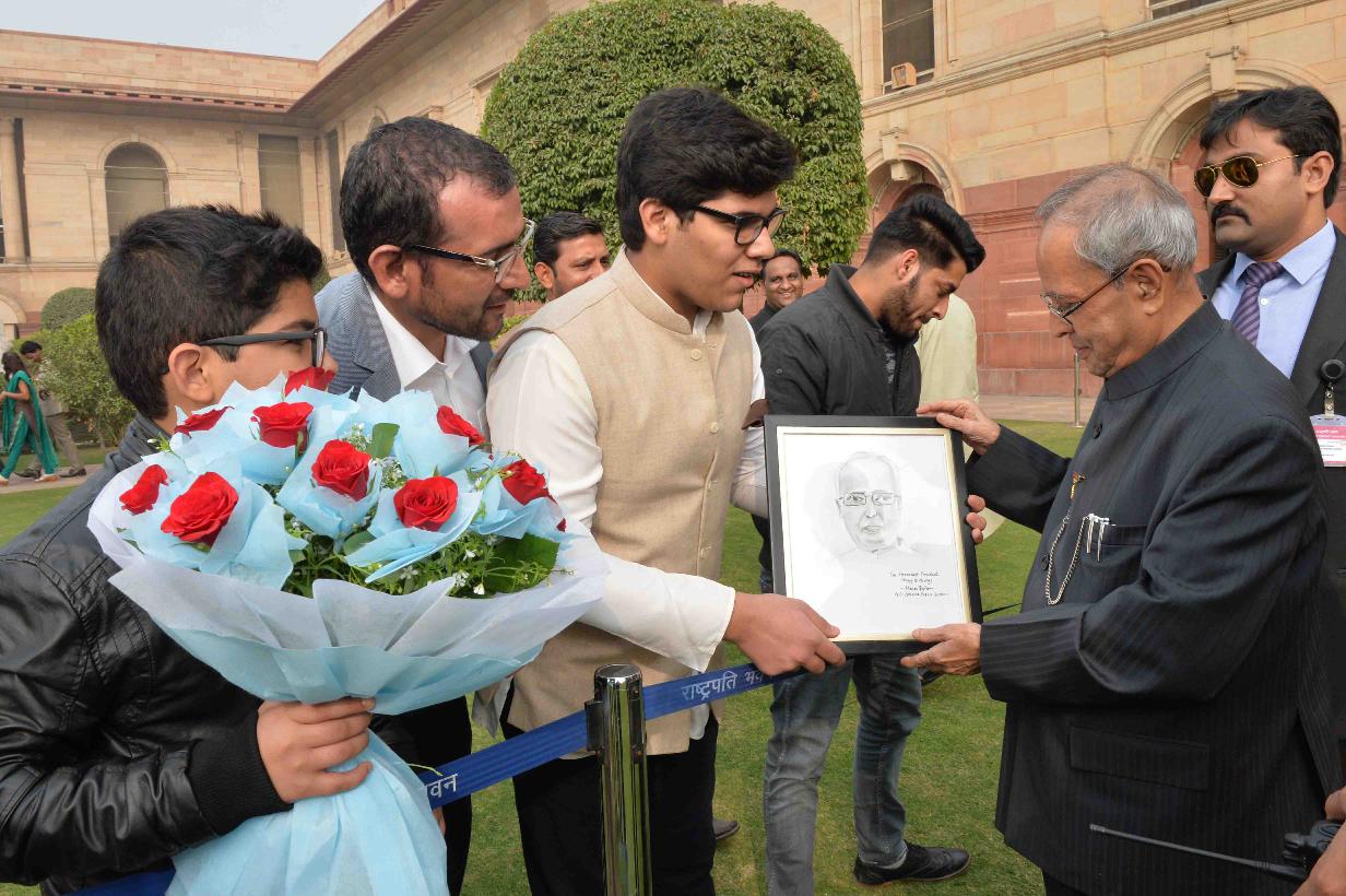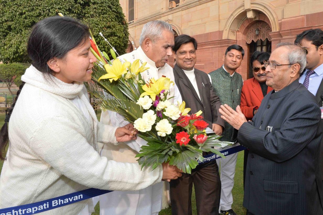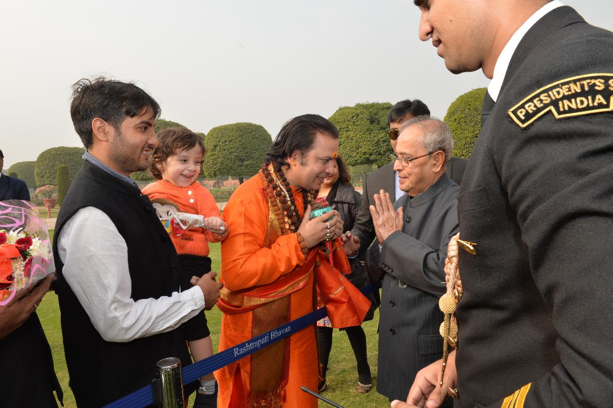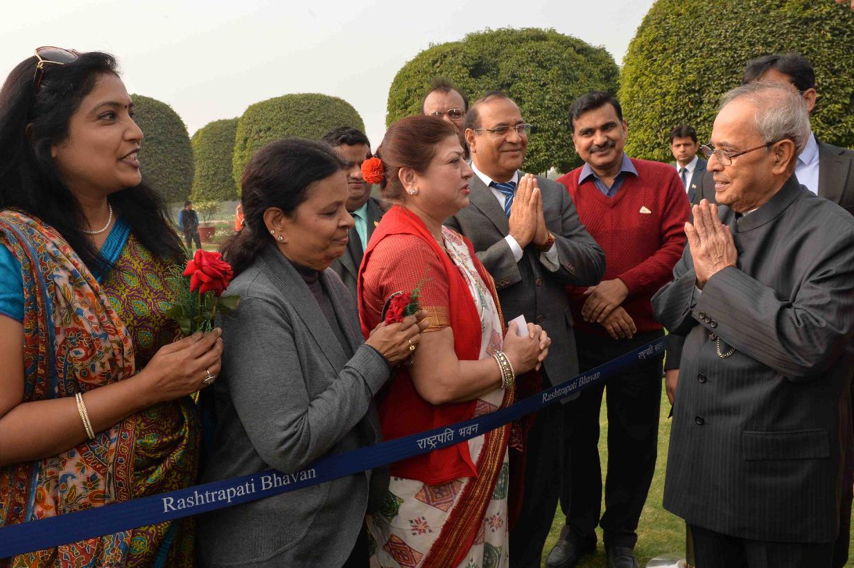 | Caption: | The President of India, Shri Pranab Mukherjee being greeted by the Rashtrapati Bhavan Officers and Staff and people of all walks of life, on the occasion of his 80th birthday, at Rashtrapati Bhavan on December 11, 2015 . |