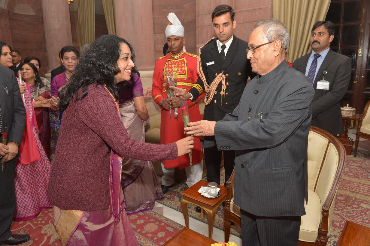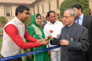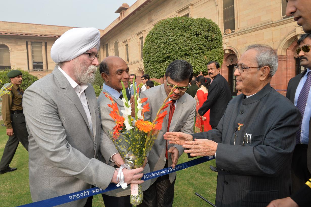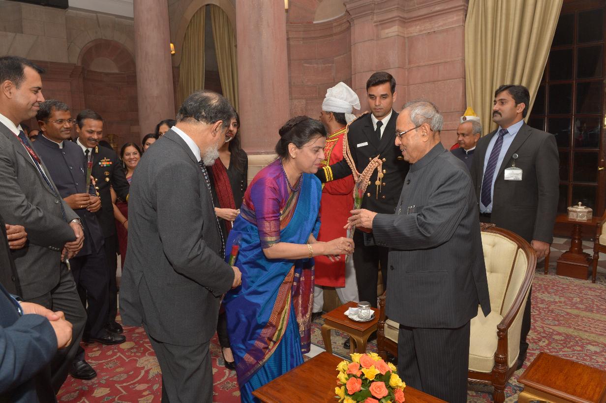 | Caption: | The President of India, Shri Pranab Mukherjee being greeted by the Rashtrapati Bhavan Officers and Staff and people of all walks of life, on the occasion of his 80th birthday, at Rashtrapati Bhavan on December 11, 2015 . |