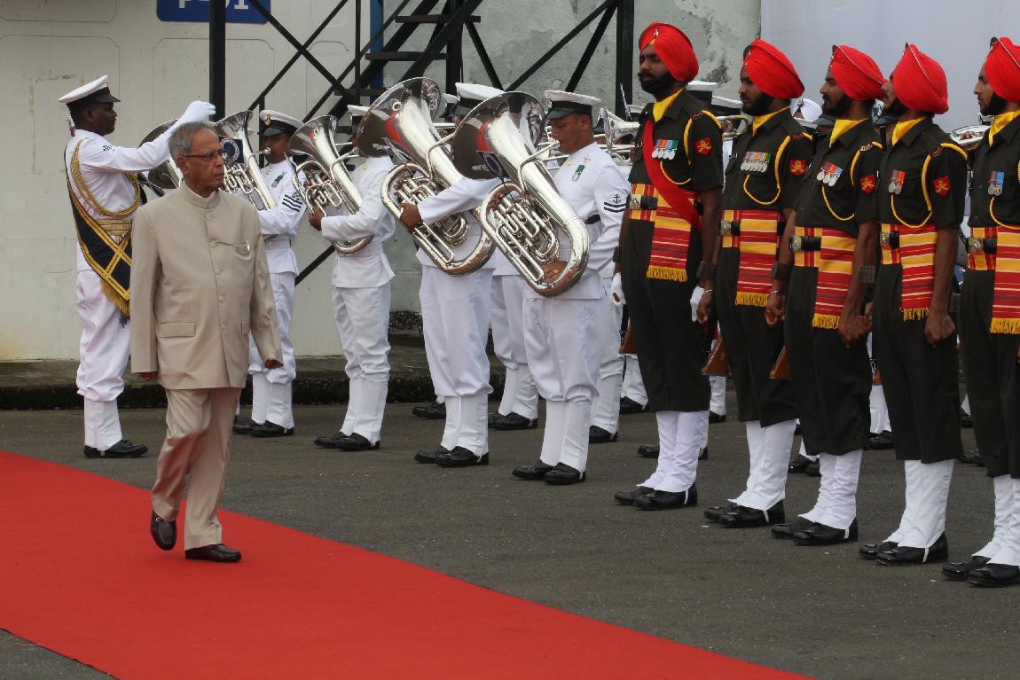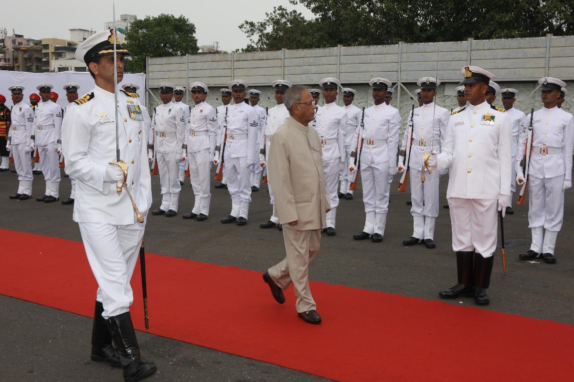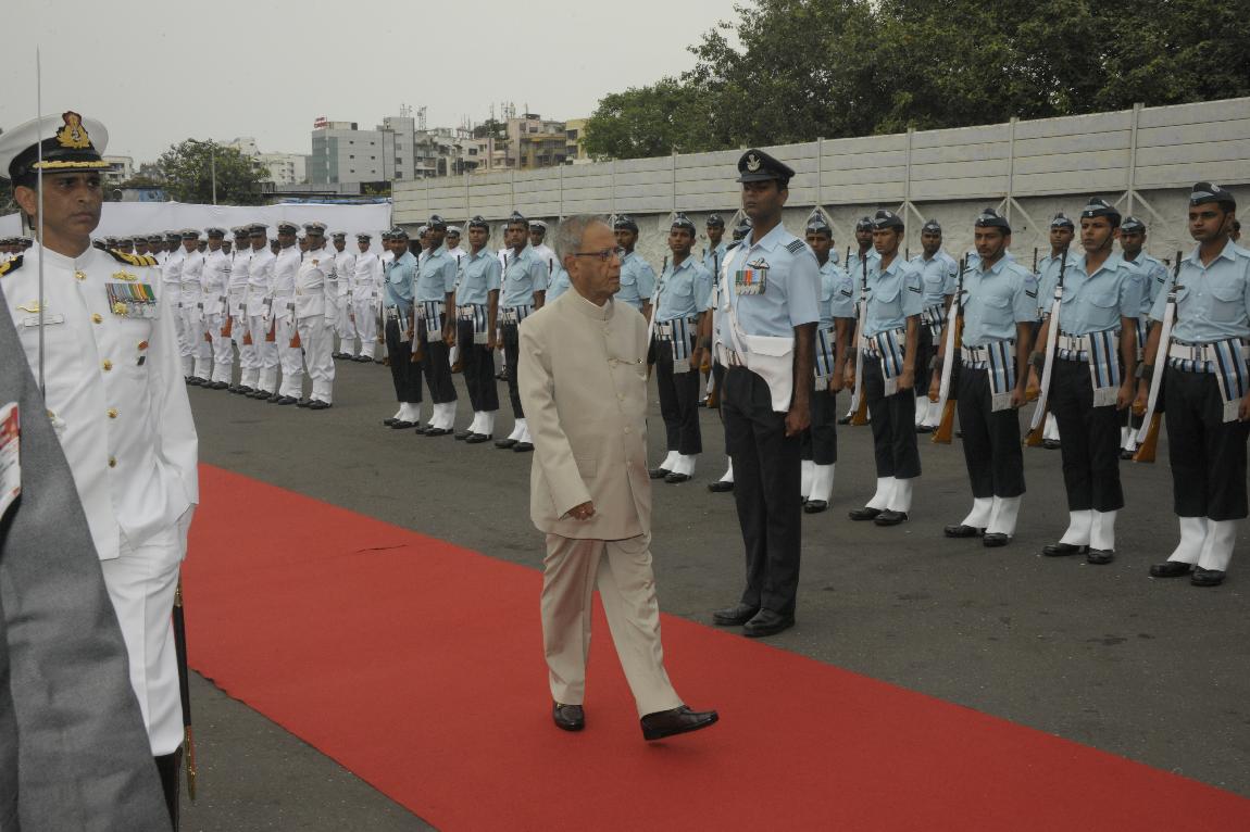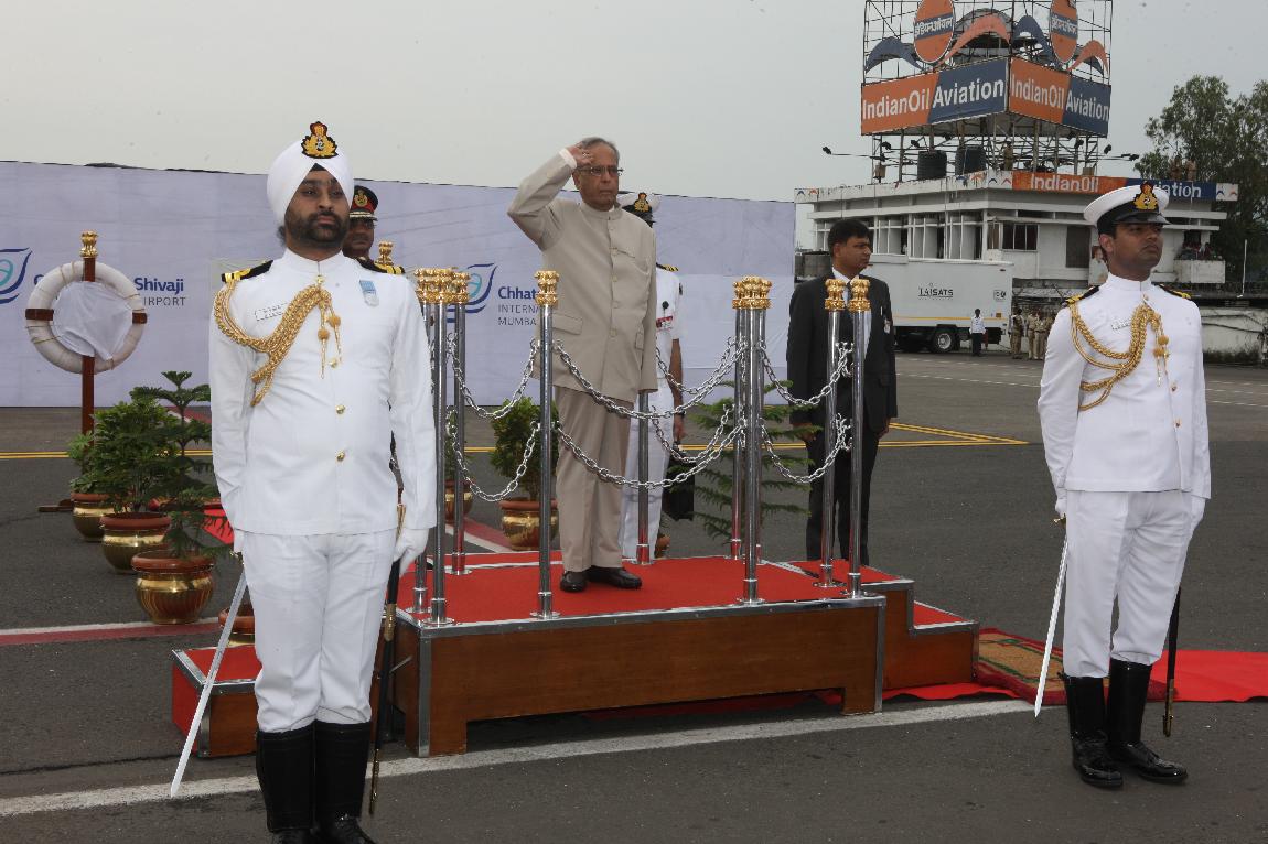 | Caption: | The President of India, Shri Pranab Mukherjee Inspecting Guard of Honour at Mumbai Airport on October 04, 2012 |