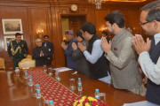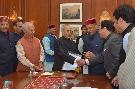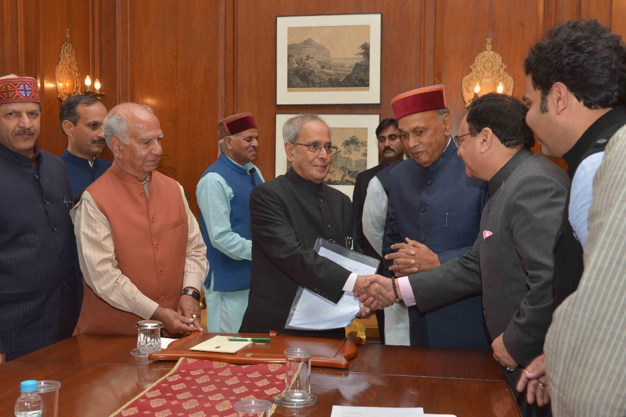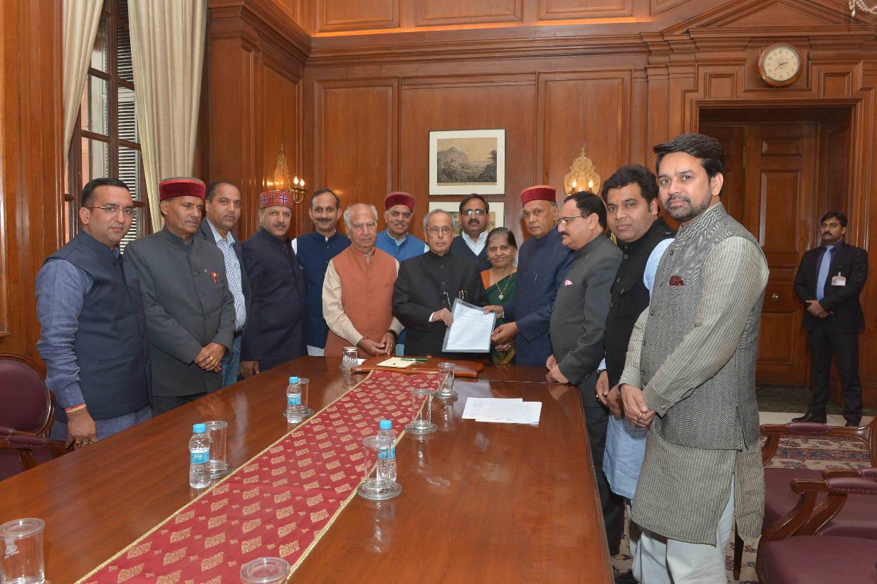 | Caption: | The President of India, Shri Pranab Mukherjee meeting with the delegation of Members of Parliament (Lok Sabha & Rajya Sabha) & Office bearers of Bharatiya Janata Party, Himachal Pradesh, at Rashtrapati Bhavan on December 09, 2015. |