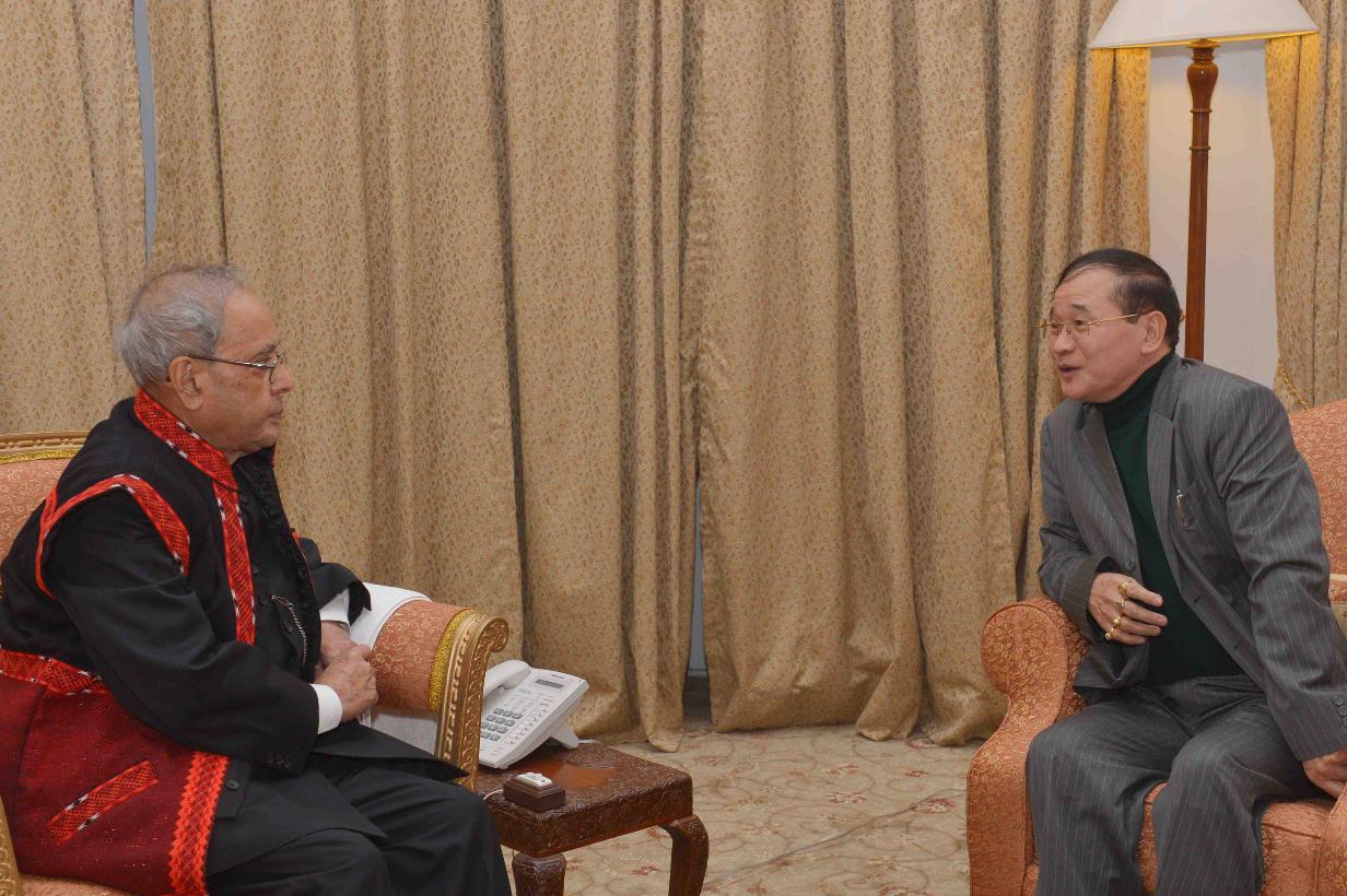 | Caption: | The President of India, Shri Pranab Mukherjee meeting with Shri Nabam Tuki, Chief Minister of Arunachal Pradesh, at Rashtrapati Nilayam, Bolarum, in Secunderabad on December 23, 2015. |