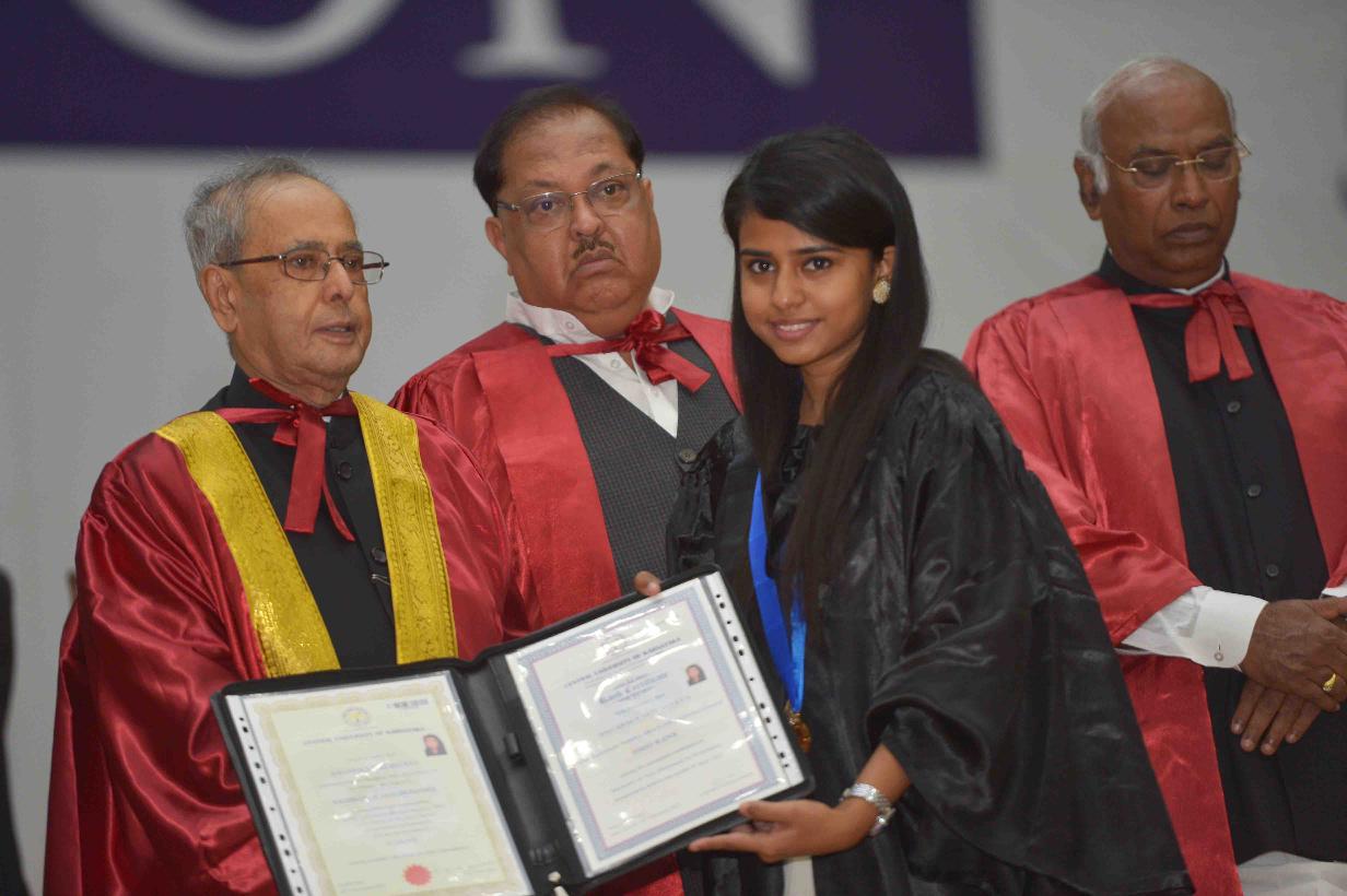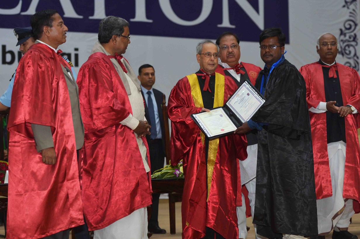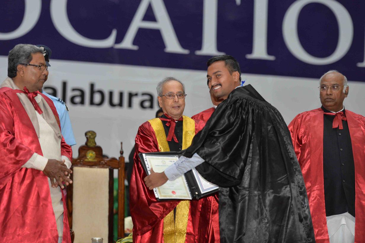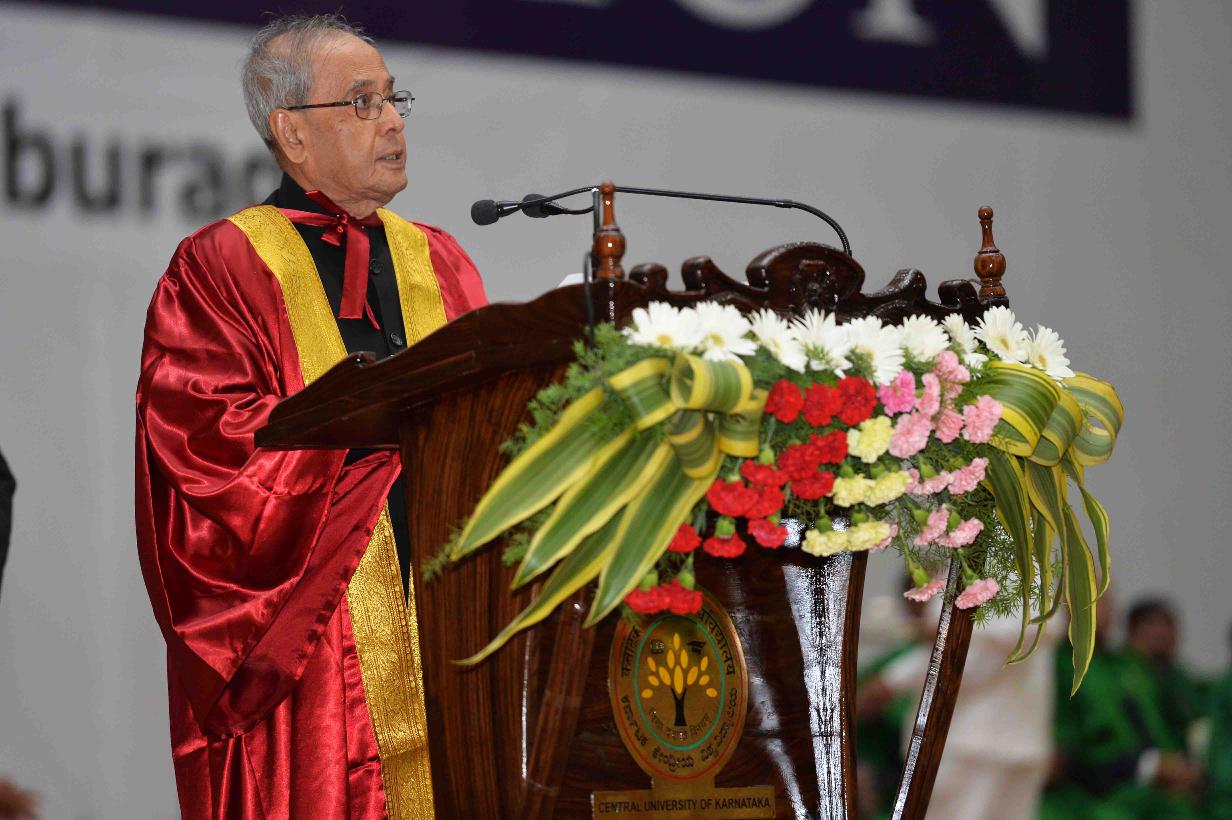| Caption: | The President of India, Shri Pranab Mukherjee addressing the 2nd Convocation of Central University of Karnataka and presenting degree to the students, at Kalaburagi, in Karnataka on December 22, 2015. |