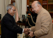 | Caption: | The President of India, Shri Pranab Mukherjee receiving Birthday Greeting from the Minister of Home Affairs, Shri Sushilkumar Shinde at Rashtrapati Bhavan in New Delhi on Dec 11, 2013 |