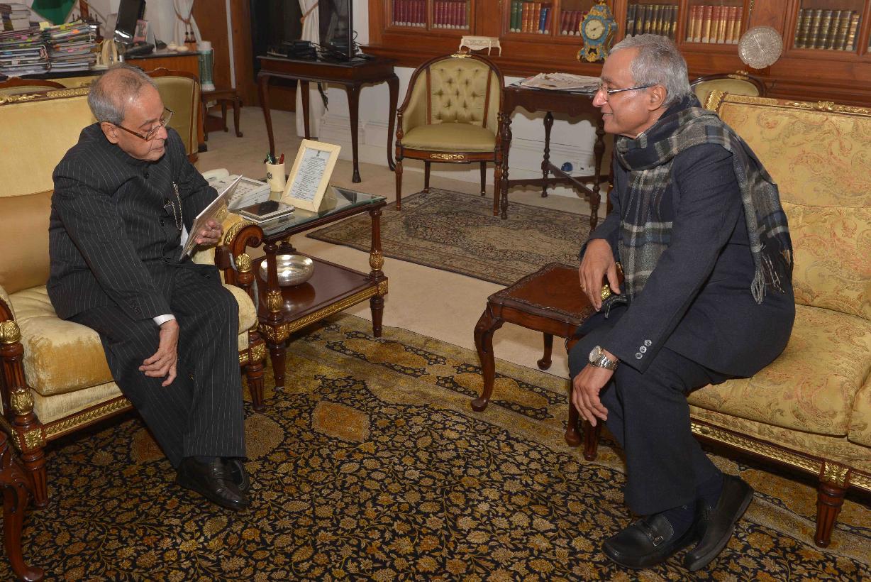 | Caption: | The President of India, Shri Pranab Mukherjee meeting with Shri Harikesh Bahadur, former CWC Member & former PCC President, Uttar Pradesh, at Rashtrapati Bhavan on January 20, 2016. |