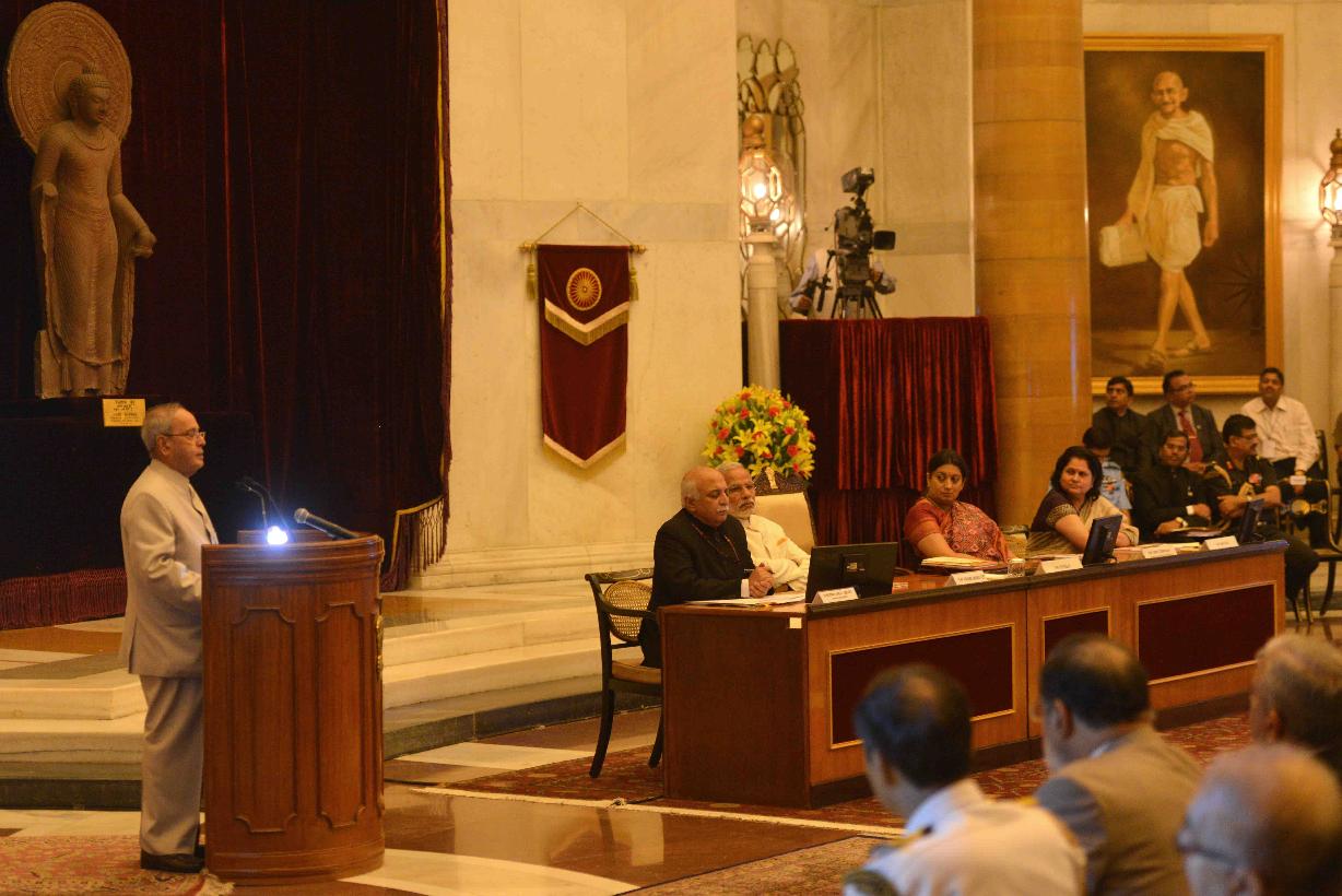 | Caption: | The President of India, Shri Pranab Mukherjee launching the IMPRINT India, during the Visitor s Conference 2015, at Rashtrapati Bhavan on November 05, 2015. |