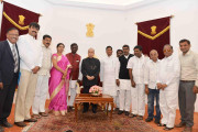 | Caption: | The President of India, Shri Pranab Mukherjee meeting with Shri Nandi Yeliaiah, MP (LS) with others, at Rashtrapati Nilayam, Bolarum, in Secunderabad on December 29, 2015. |