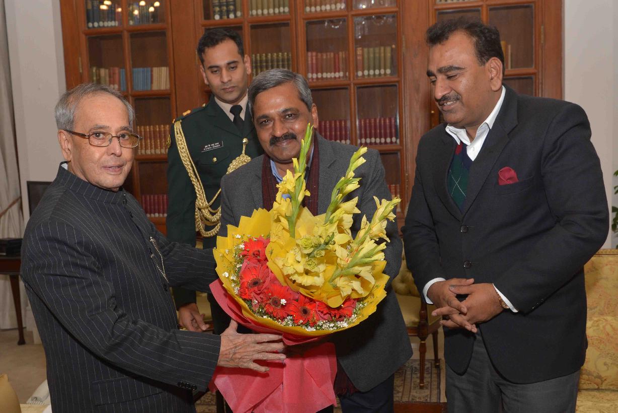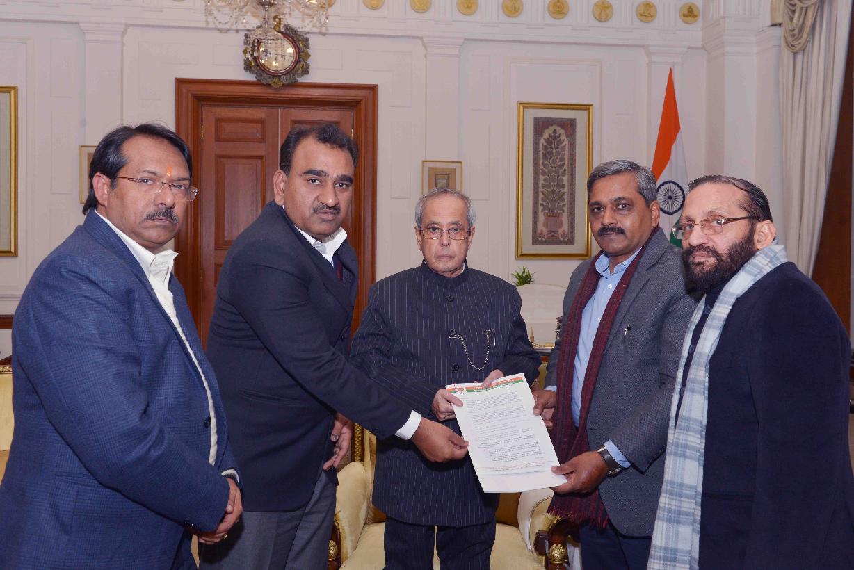 | Caption: | The President of India, Shri Pranab Mukherjee meeting with Mayors of Delhi Municipal Corporation, Shri Subhash Arya, (South Delhi), Shri Ravinder Gupta (North Delhi), Shri Harsh Deep Malhotra (East Delhi) and Shri Satish Upadhyay, President, BJP Delhi Pradesh, at Rashtrapati Bhavan on January 20, 2016. |