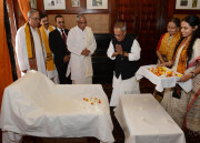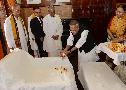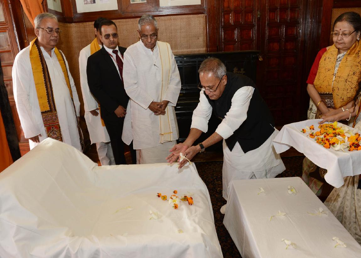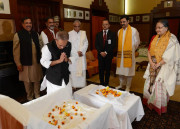 | Caption: | The President of India, Shri Pranab Mukherjee paying floral tributes to Gurudev Rabindranath Tagore at Udayana, Santiniketan in West Bengal on Dec 07, 2013 |