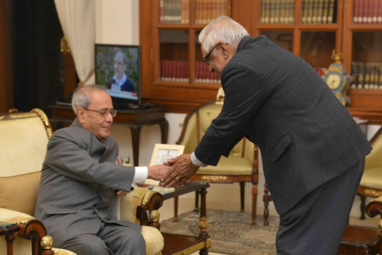 | Caption: | The President of India, Shri Pranab Mukherjee meeting with Shri H.K. Dua, Ex-MP (RS), at Rashtrapati Bhavan on January 02, 2016. |