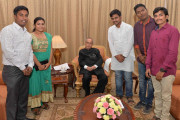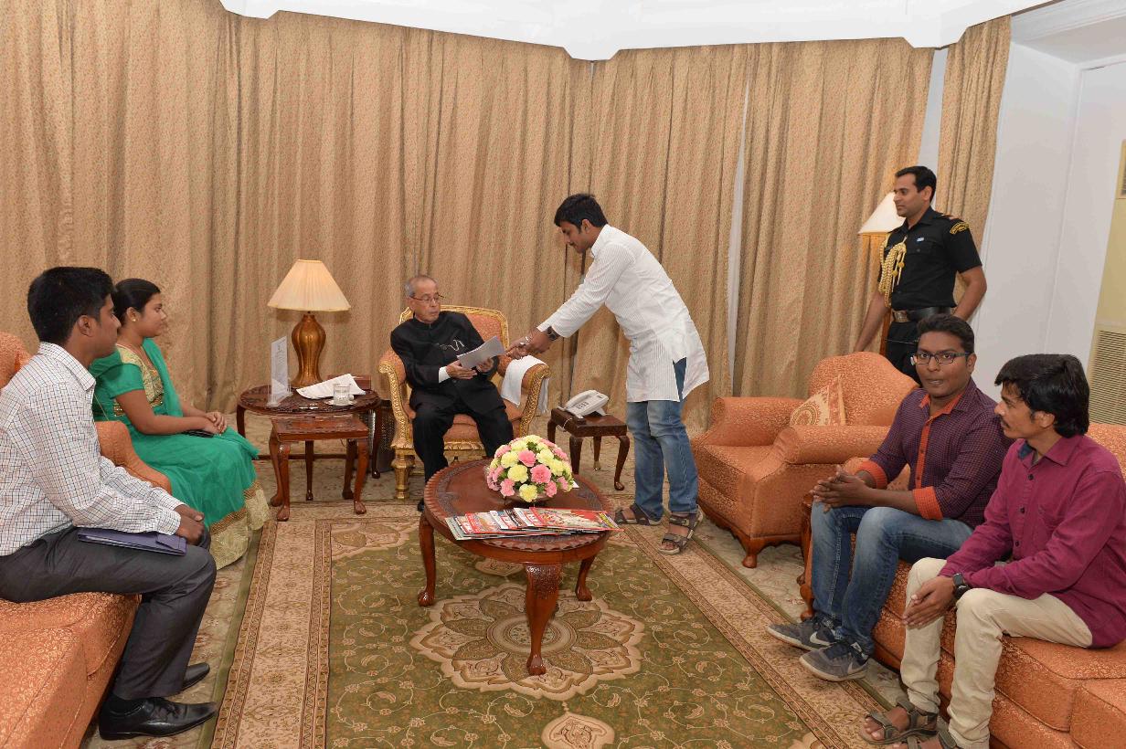 | Caption: | The President of India, Shri Pranab Mukherjee meeting with Shri V. Shashidhar with others, at Rashtrapati Nilayam, Bolarum, in Secunderabad on December 30, 2015. |