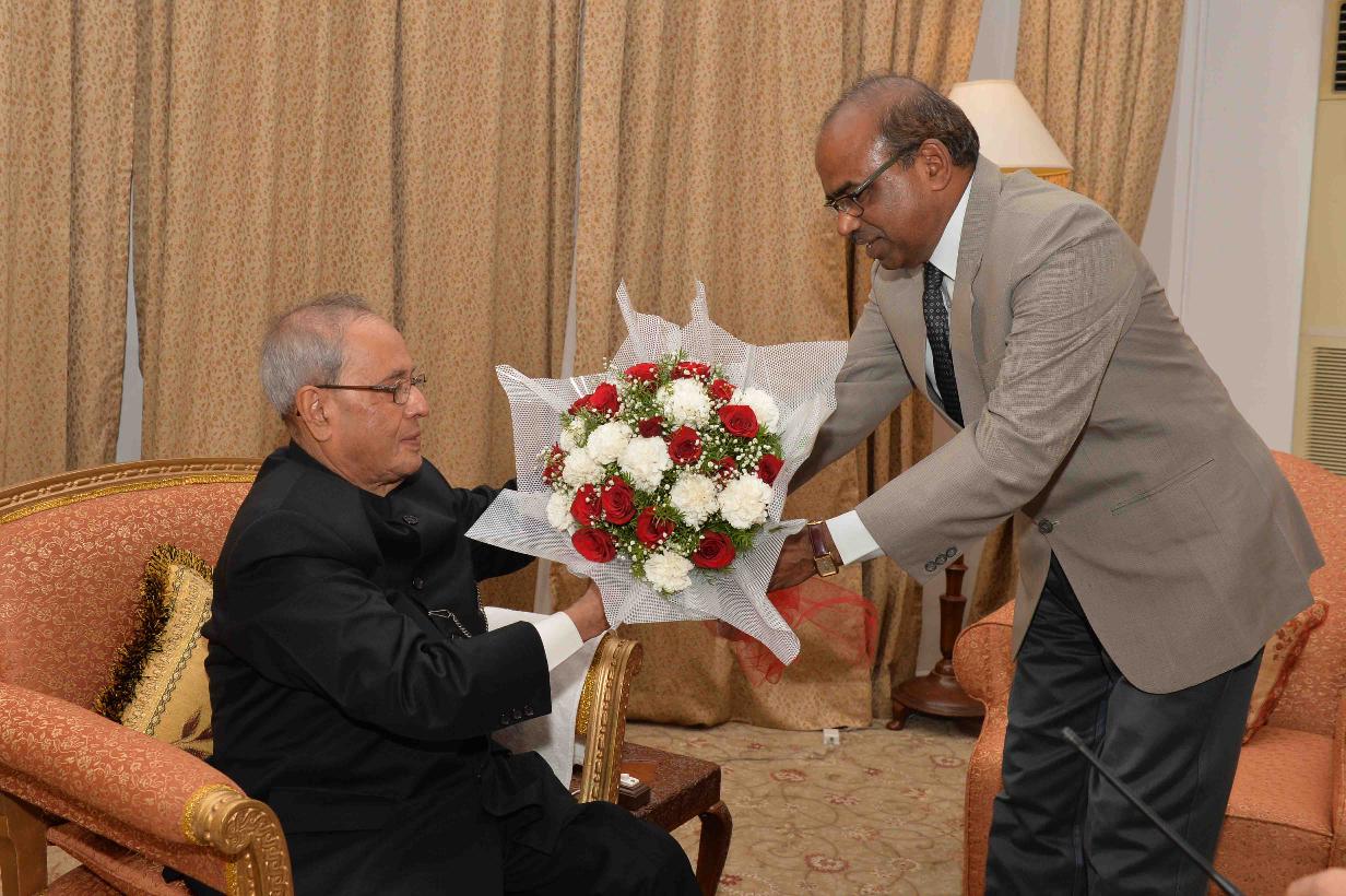 | Caption: | The President of India, Shri Pranab Mukherjee meeting with Shri Justice L. Narasimha Reddy, at Rashtrapati Nilayam, Bolarum, in Secunderabad on December 29, 2015. |