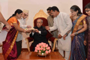 | Caption: | The President of India, Shri Pranab Mukherjee meeting with Shri J.J. Satyanarayana with others, at Rashtrapati Nilayam, Bolarum, in Secunderabad on December 29, 2015. |