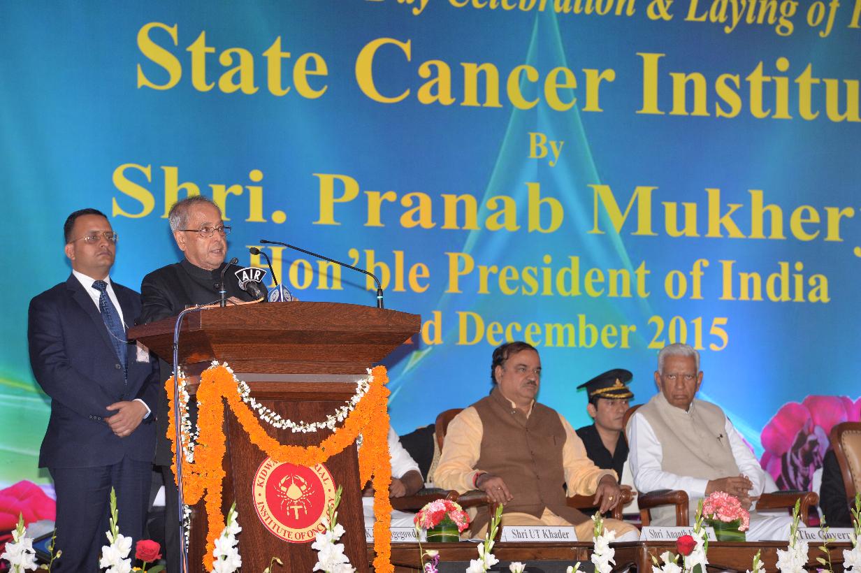 | Caption: | The President of India, Shri Pranab Mukherjee inaugurated the Foundation Day celebrations of the Kidwai Memorial Institute of Oncology and laid the Foundation Stone of a State Cancer Institute, in Bengaluru on December 23, 2015. |