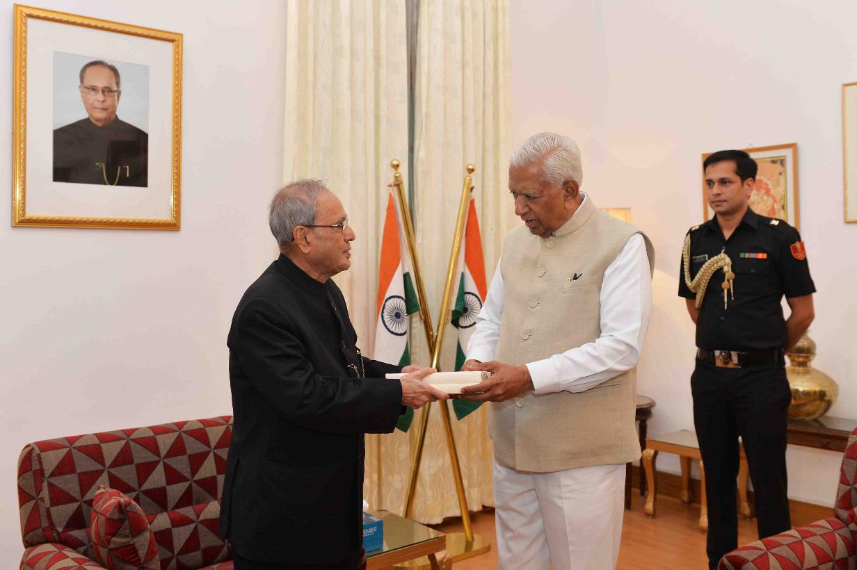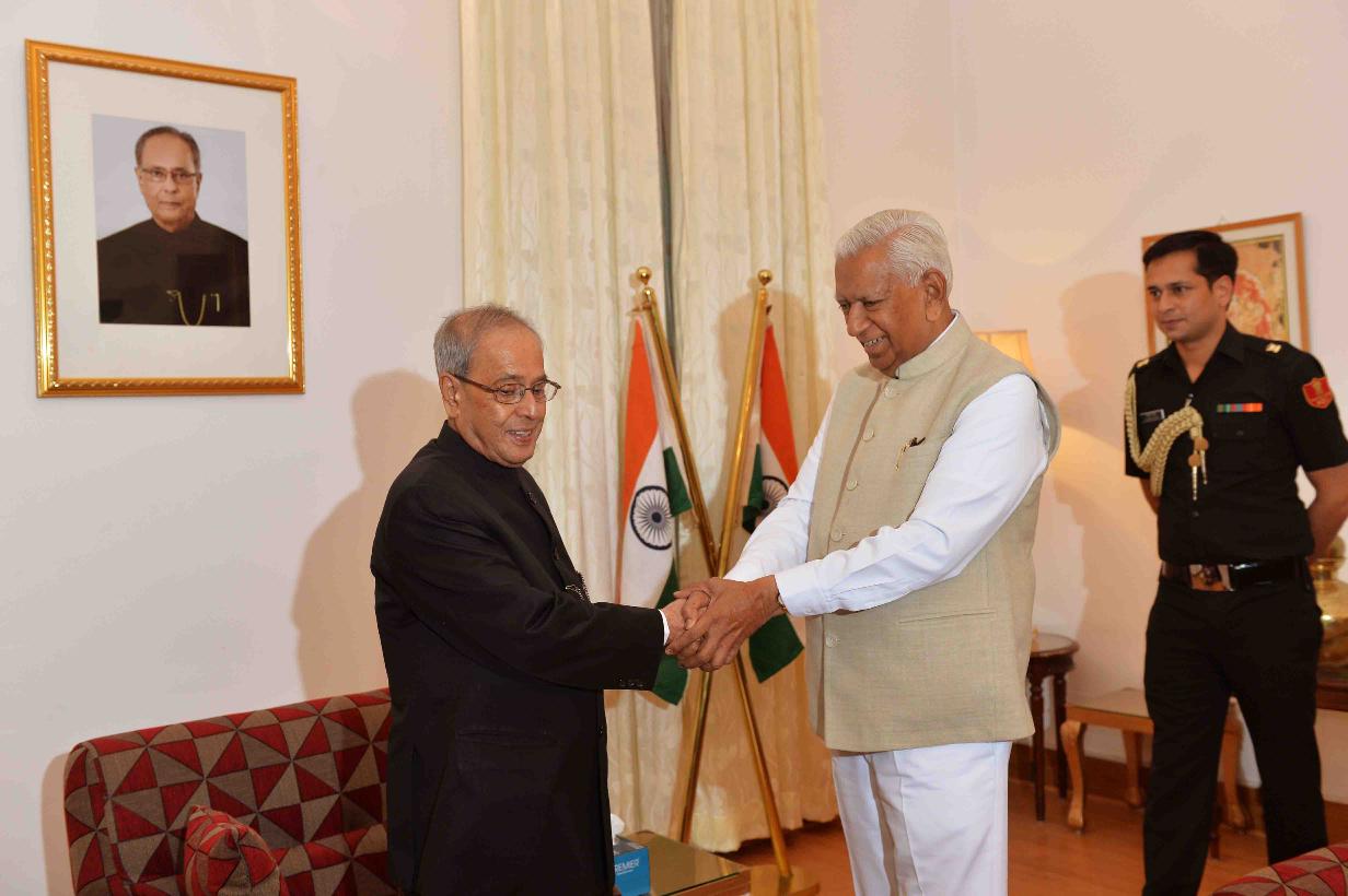 | Caption: | The President of India, Shri Pranab Mukherjee meeting with the Governor of Karnataka, Shri Vajubhai Rudabhai Vala, at Raj Bhavan, Bengaluru on December 23, 2015. |