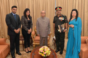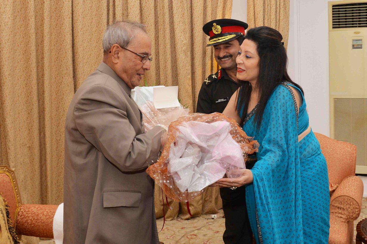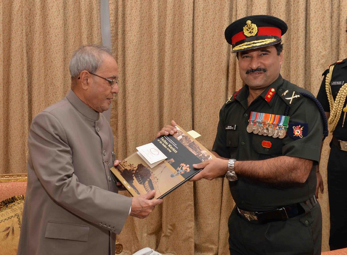 | Caption: | The President of India, Shri Pranab Mukherjee meeting with Maj. Gen. Sanjay Khanna with others, at Rashtrapati Nilayam, Bolarum, in Secunderabad on December 26, 2015. |