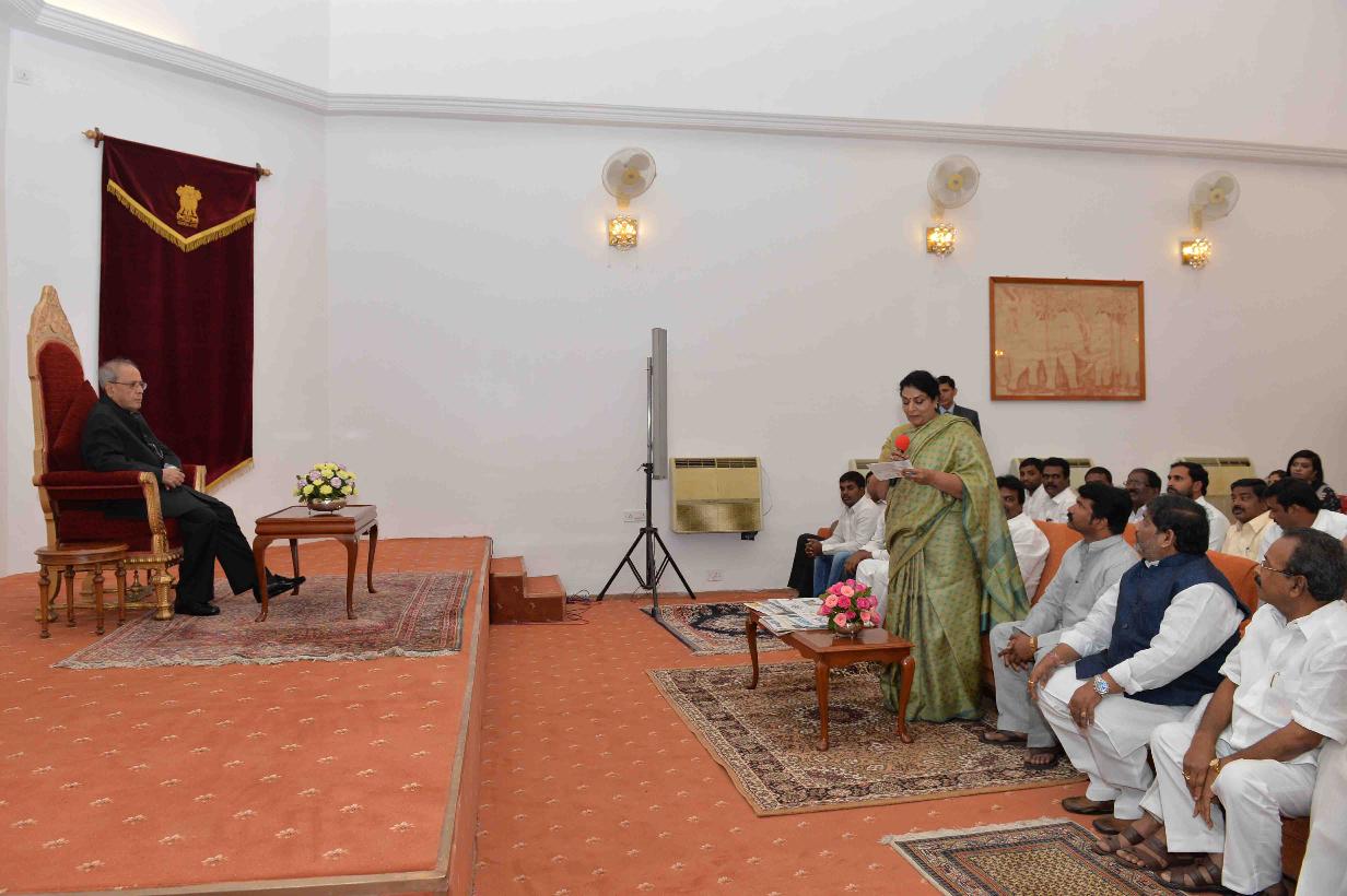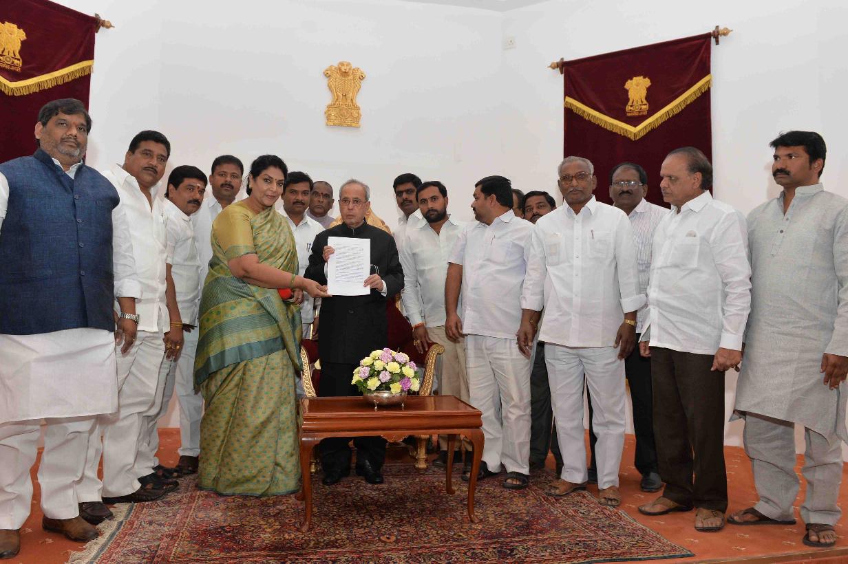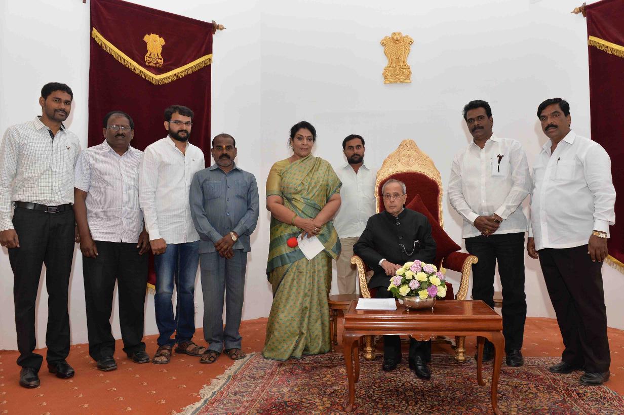 | Caption: | The President of India, Shri Pranab Mukherjee meeting with Smt. Renuka Chowdhury, MP (RS) with others, at Rashtrapati Nilayam, Bolarum, in Secunderabad on December 30, 2015. |