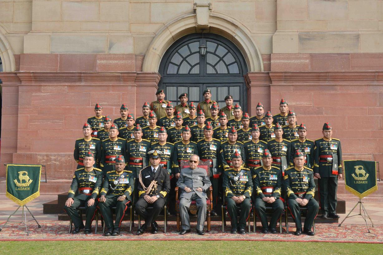 | Caption: | The President of India, Shri Pranab Mukherjee with the Military Band of Ladakh Scouts Regimental Centre, at Rashtrapati Bhavan on January 02, 2016. |