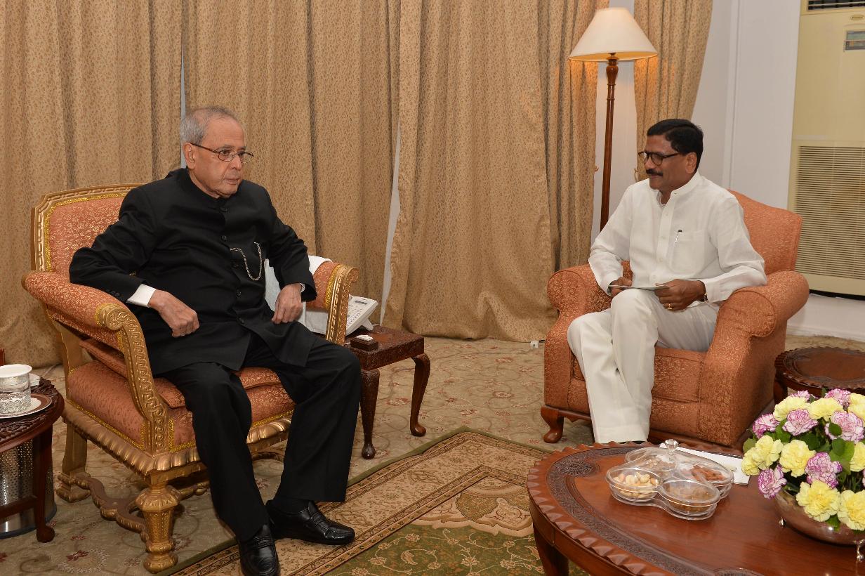 | Caption: | The President of India, Shri Pranab Mukherjee meeting with Shri M. Shashidhar Reddy, at Rashtrapati Nilayam, Bolarum, in Secunderabad on December 29, 2015. |