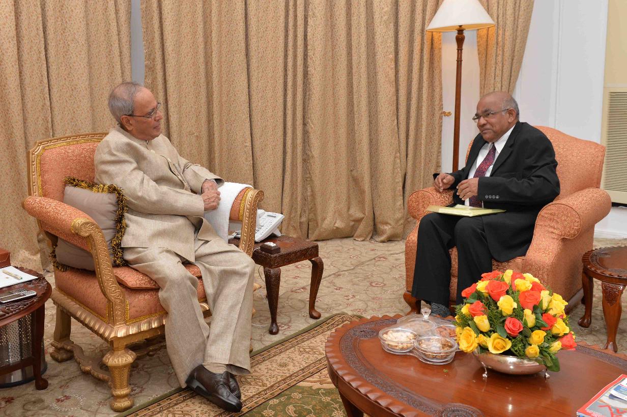 | Caption: | The President of India, Shri Pranab Mukherjee meeting with Dr. Y. Venugopal Reddy, at Rashtrapati Nilayam, Bolarum, in Secunderabad on December 24, 2015. |