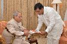 | Caption: | The President of India, Shri Pranab Mukherjee meeting with Shri Ponnam Prabhakar with others, at Rashtrapati Nilayam, Bolarum, in Secunderabad on December 21, 2015. |