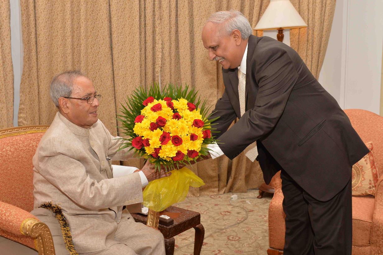 | Caption: | The President of India, Shri Pranab Mukherjee meeting with Shri I.Y.R. Rao, at Rashtrapati Nilayam, Bolarum, in Secunderabad on December 21, 2015. |
