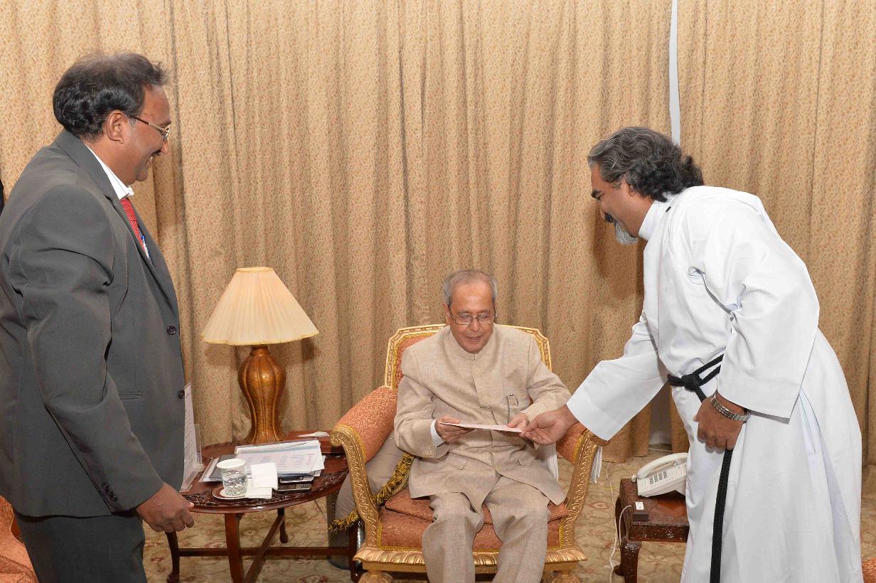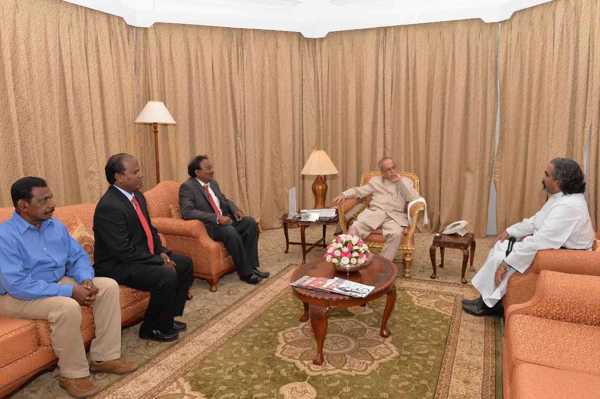 | Caption: | The President of India, Shri Pranab Mukherjee meeting with Rt. Rev. Dyva Aseeradam, at Rashtrapati Nilayam, Bolarum, in Secunderabad on December 21, 2015. |