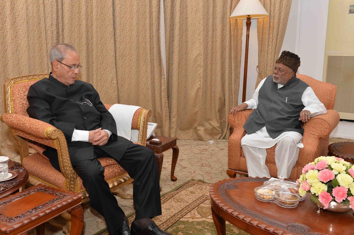 | Caption: | The President of India, Shri Pranab Mukherjee meeting with Shri C.K. Jaffer Sharief, at Rashtrapati Nilayam, Bolarum, in Secunderabad on December 30, 2015. |