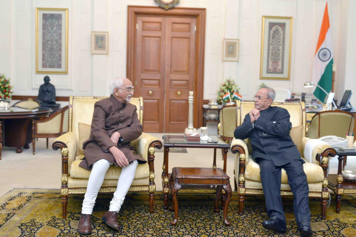 | Caption: | The President of India, Shri Pranab Mukherjee meeting with Shri Mohd. Hamid Ansari, Vice President of India, on the occasion of New Year, at Rashtrapati Bhavan on January 01, 2016. |