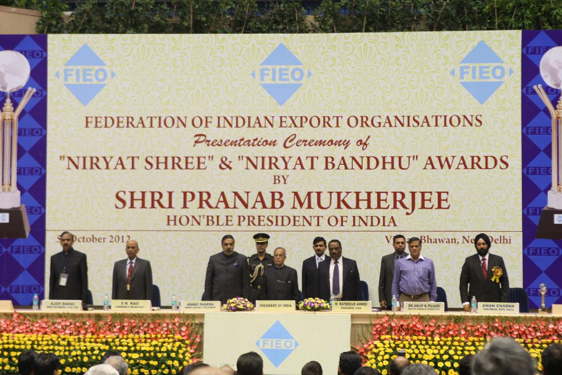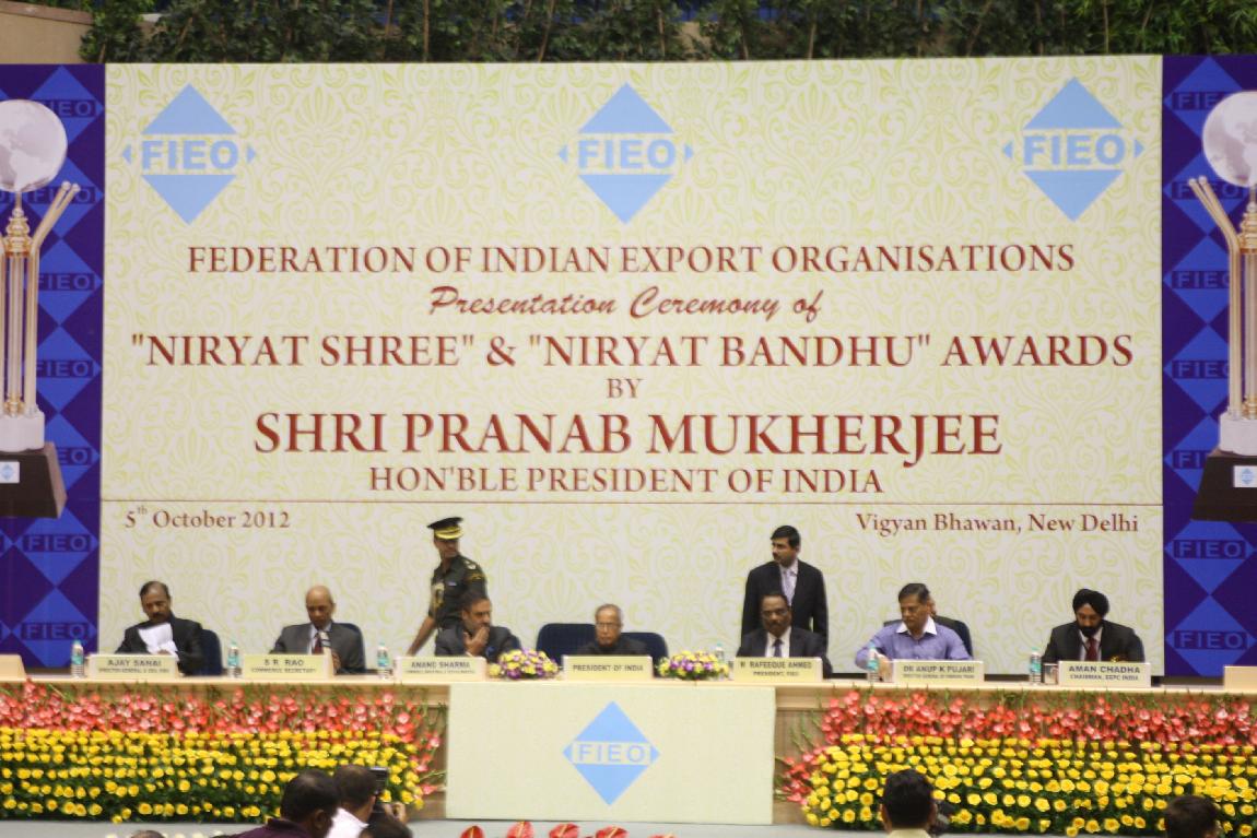 | Caption: | The President of India, Shri Pranab Mukherjee Attending Federation of Indian Export Organisations Niryat Bandhu Awards on October 05, 2012 |