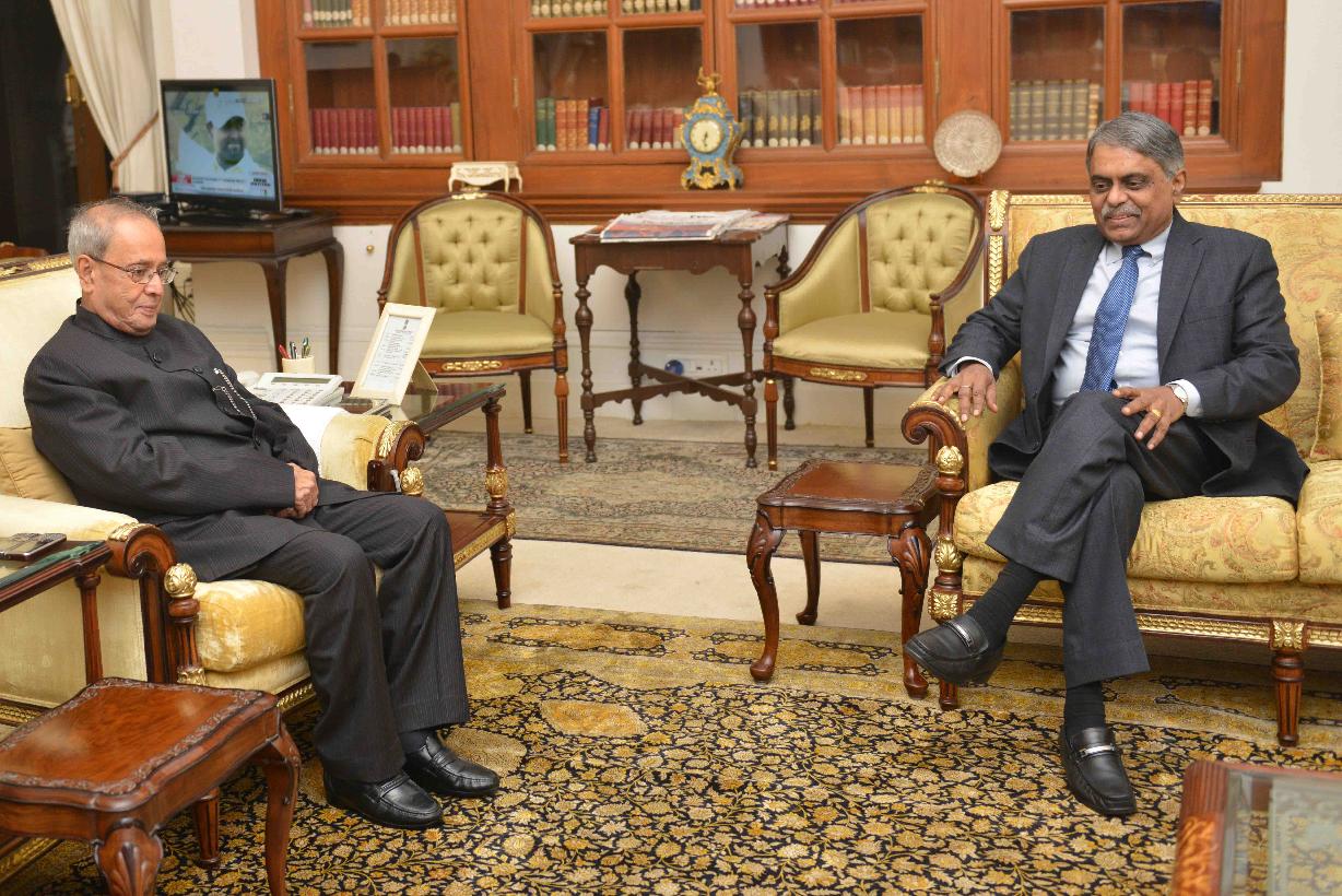 | Caption: | The President of India, Shri Pranab Mukherjee meeting with Shri P.K. Sinha, Cabinet Secretary, on the occasion of New Year, at Rashtrapati Bhavan on January 01, 2016. |