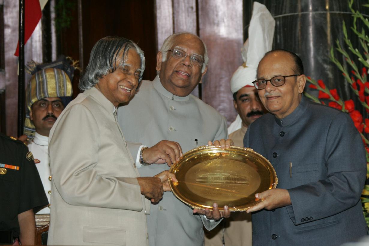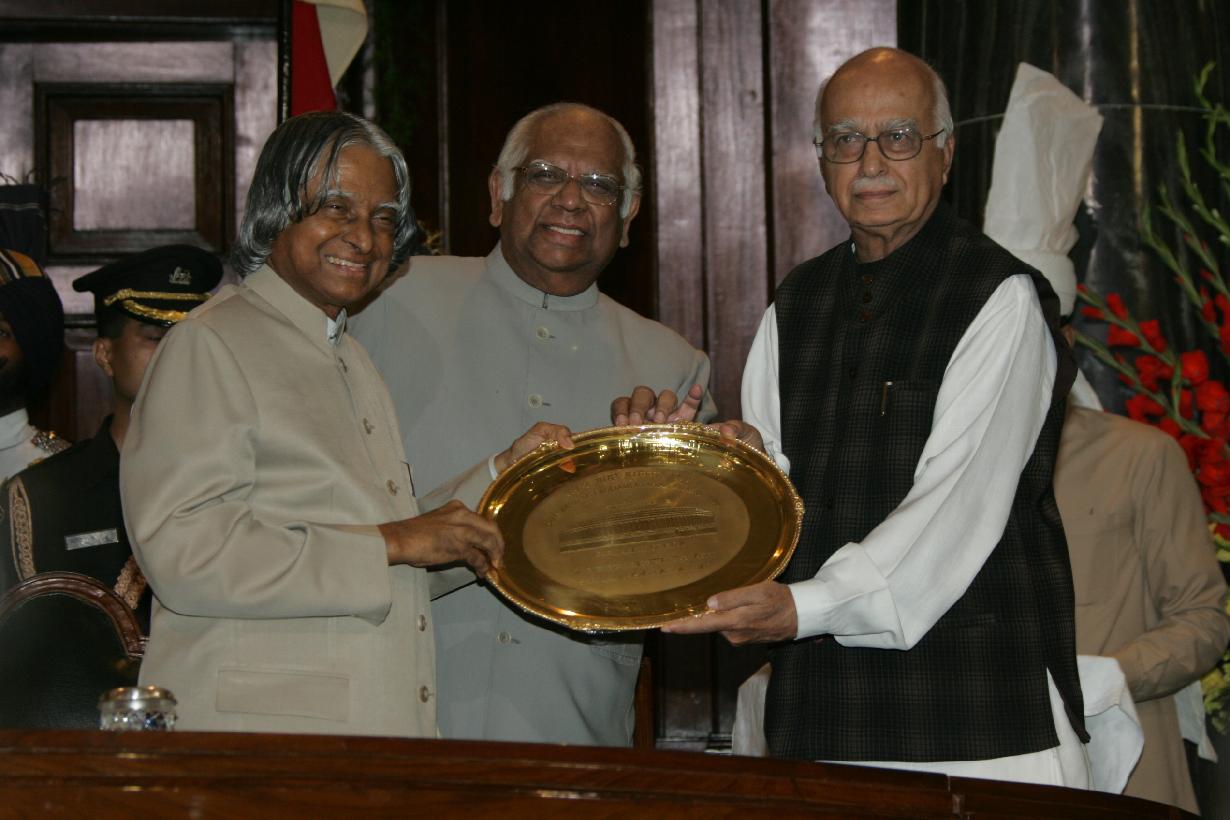 | Caption: | The President of India, Dr A P J Abdul Kalam giving away the Outstanding Parliamentarian Award for the Years 1999, 2000, 2001 and 2002 to Shri L K Advani, Shri Arjun Singh, Shri Jaswant Singh and Dr Manmohan Singh Respectively in the Central Hall of Parliament House in New Delhi on March 21, 2005 |