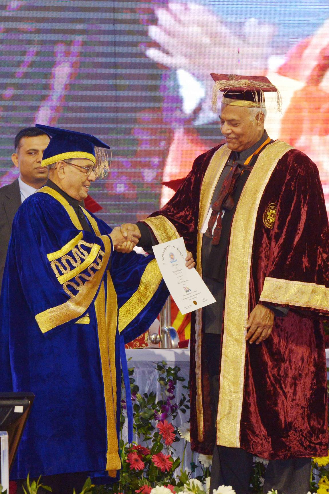 | Caption: | The President of India, Shri Pranab Mukherjee conferring D Lit (Honoris Causa) on Shri Yashwant Sinha, former Union Minister of Finance & External Affairs, at the Seventh Convocation of Vinoba Bhave University, at Hazaribagh in Jharkhand on January 09, 2016. |