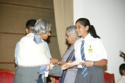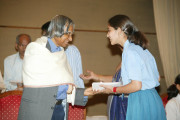 | Caption: | The President of India, Dr A P J Abdul Kalam at the Award Presentation Function of Shankar's International Children's Competition at Sri Sathya Sai International Centre Auditorium, Lodhi Road Institutional Area in New Delhi on March 22, 2005 |