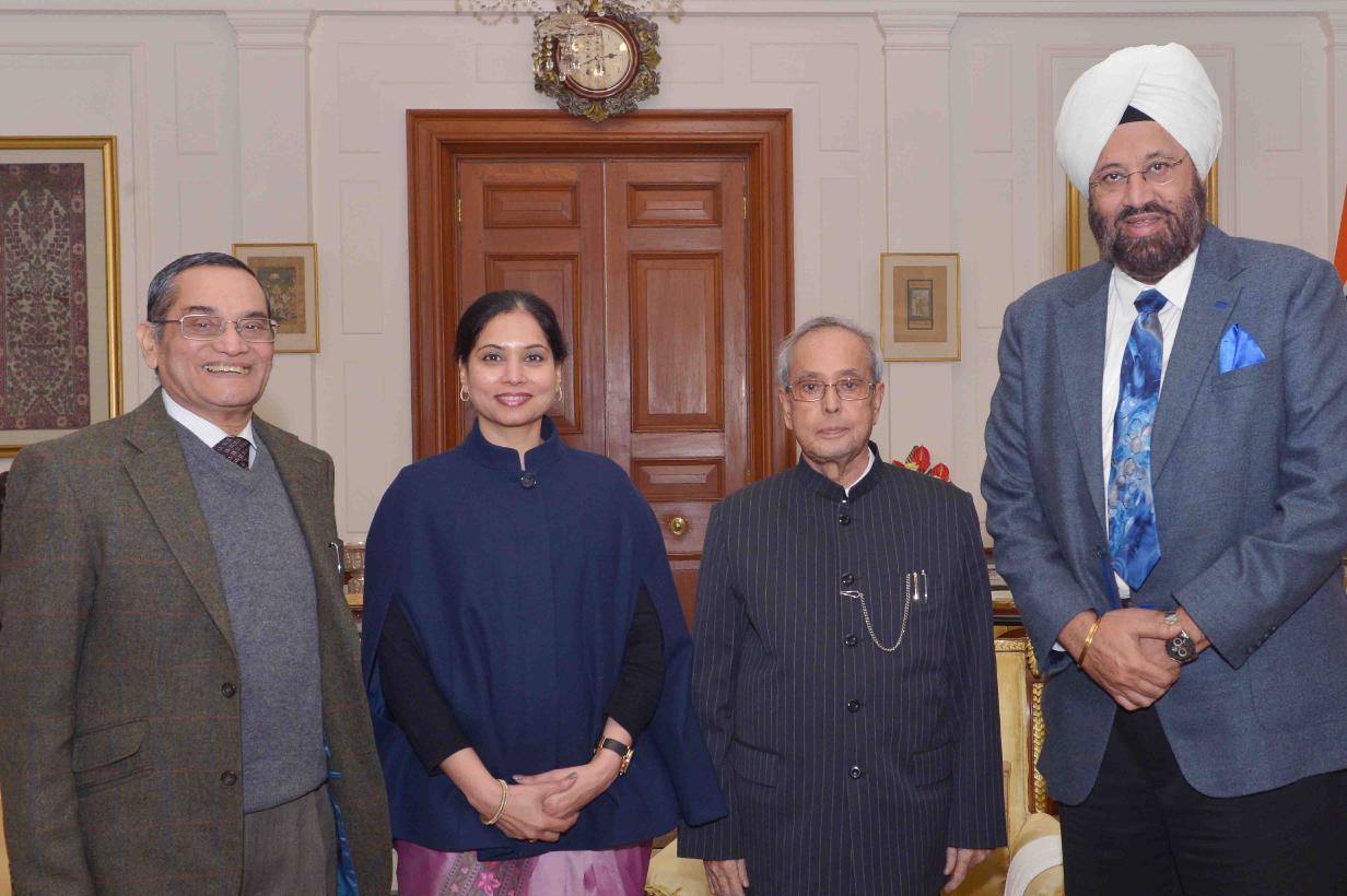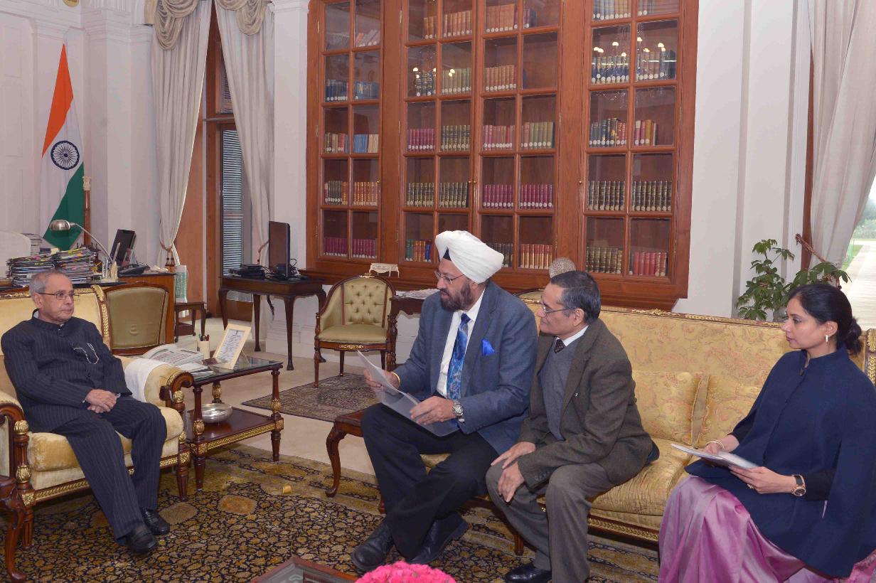 | Caption: | The President of India, Shri Pranab Mukherjee meeting with Dr. Nandini Sharma, Dr. Kalyan Banerjee and Dr. SPS Bakshi, at Rashtrapati Bhavan on January 20, 2016. |