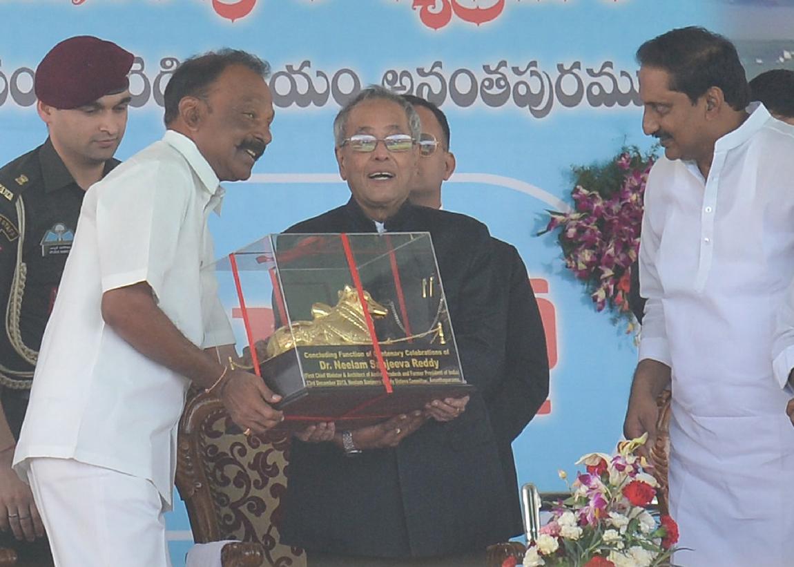| Caption: | The President of India, Shri Pranab Mukherjee during the Concluding Function of the Centenary Celebrations of the Former President of India, Dr Neelam Sanjeeva Reddy at Ananthapuram in Andhra Pradesh on Dec 23, 2013 |