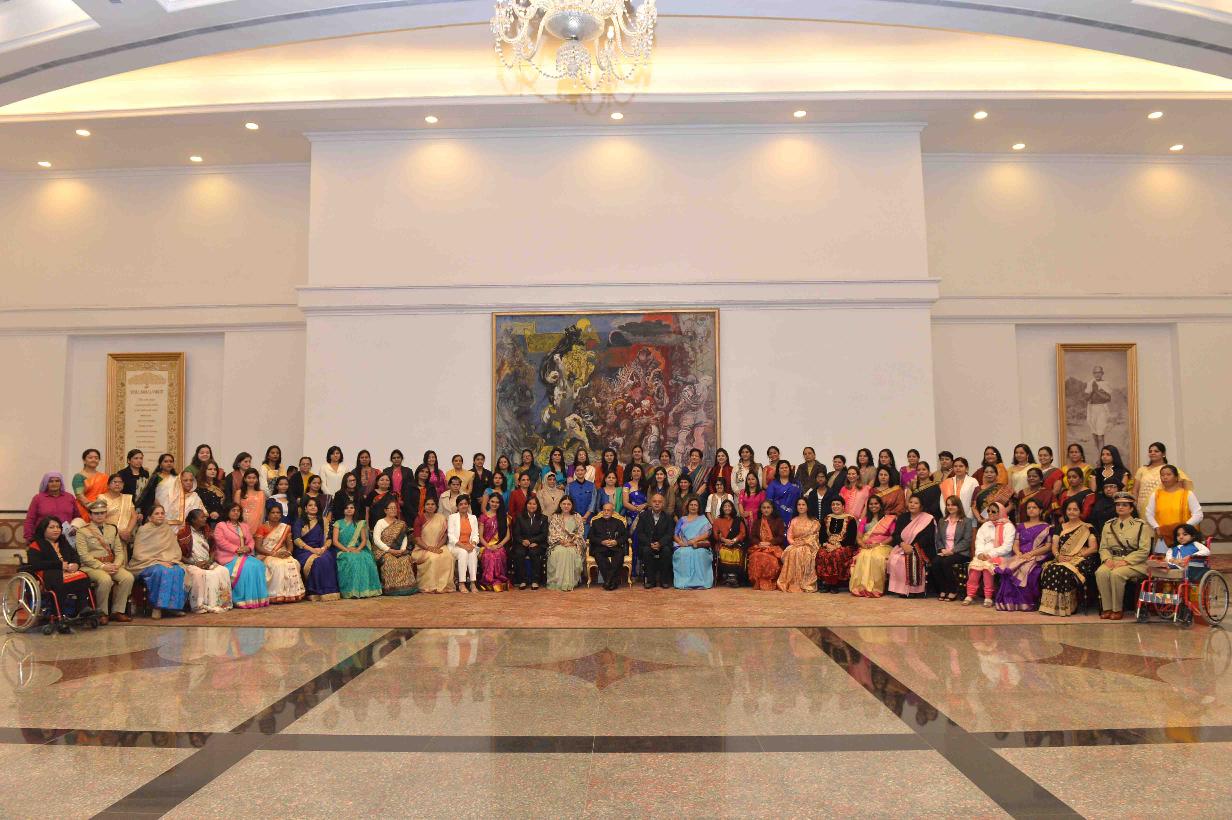 | Caption: | The President of India, Shri Pranab Mukherjee during a lunch hosted for the 100 Women Achievers of India selected by the Ministry of Women and Child Development in collaboration with Facebook vide contest through Public Nominations, at Rashtrapati Bhavan on January 22, 2016. |