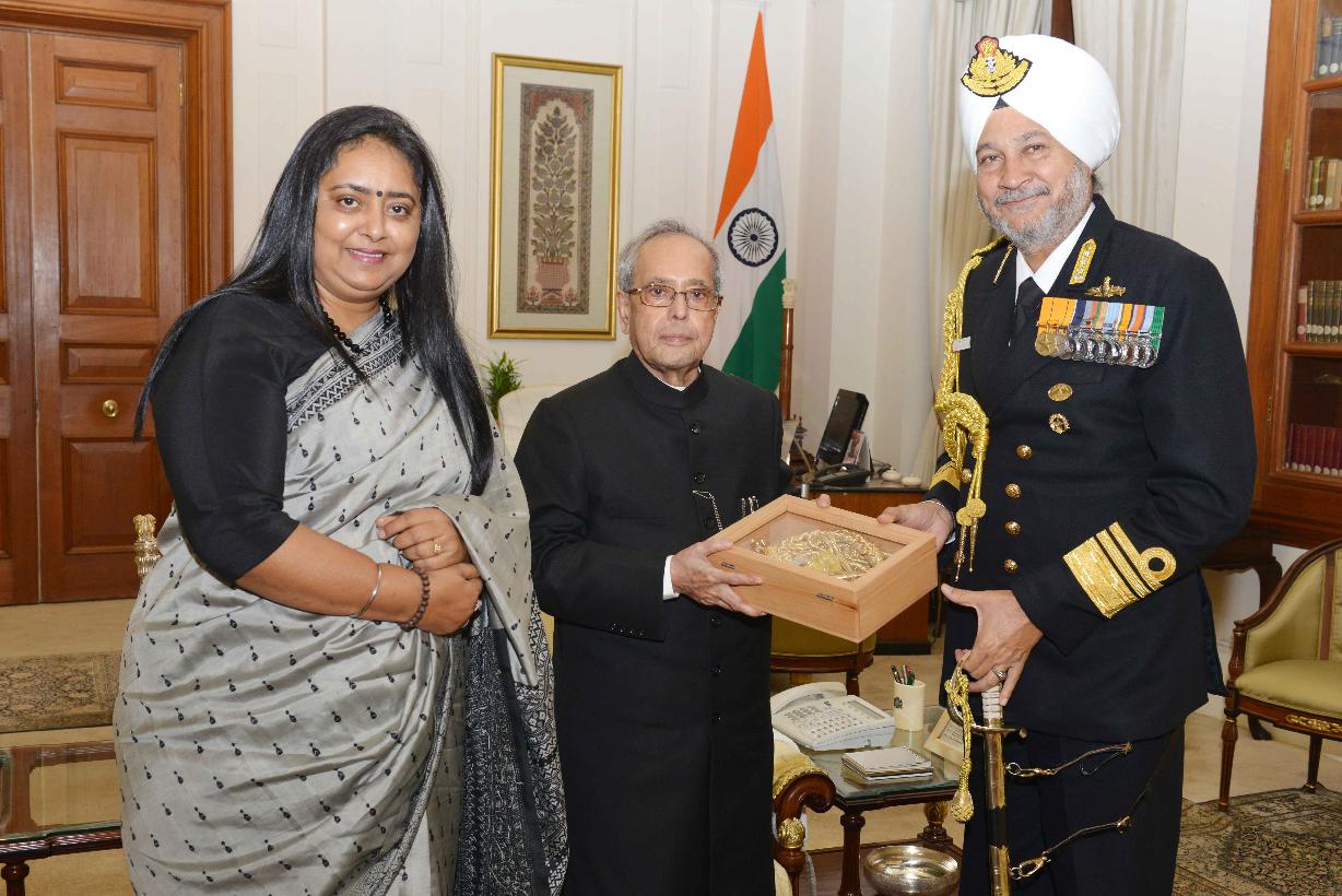 | Caption: | The President of India, Shri Pranab Mukherjee meeting with Vice Admiral SPS Cheema, Flag Officer Commanding-in-Chief, HQ WC & Hony ADC to the President alongwith Smt. Gagandeep Cheema from Mumbai, at Rashtrapati Bhavan on December 27, 2016. |