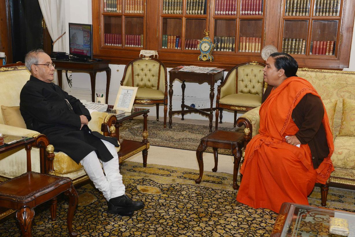 | Caption: | The President of India, Shri Pranab Mukherjee meeting with Sushri Uma Bharti, Minister for Water Resources, River Development and Ganga Rejuvenation, at Rashtrapati Bhavan on December 27, 2016. |