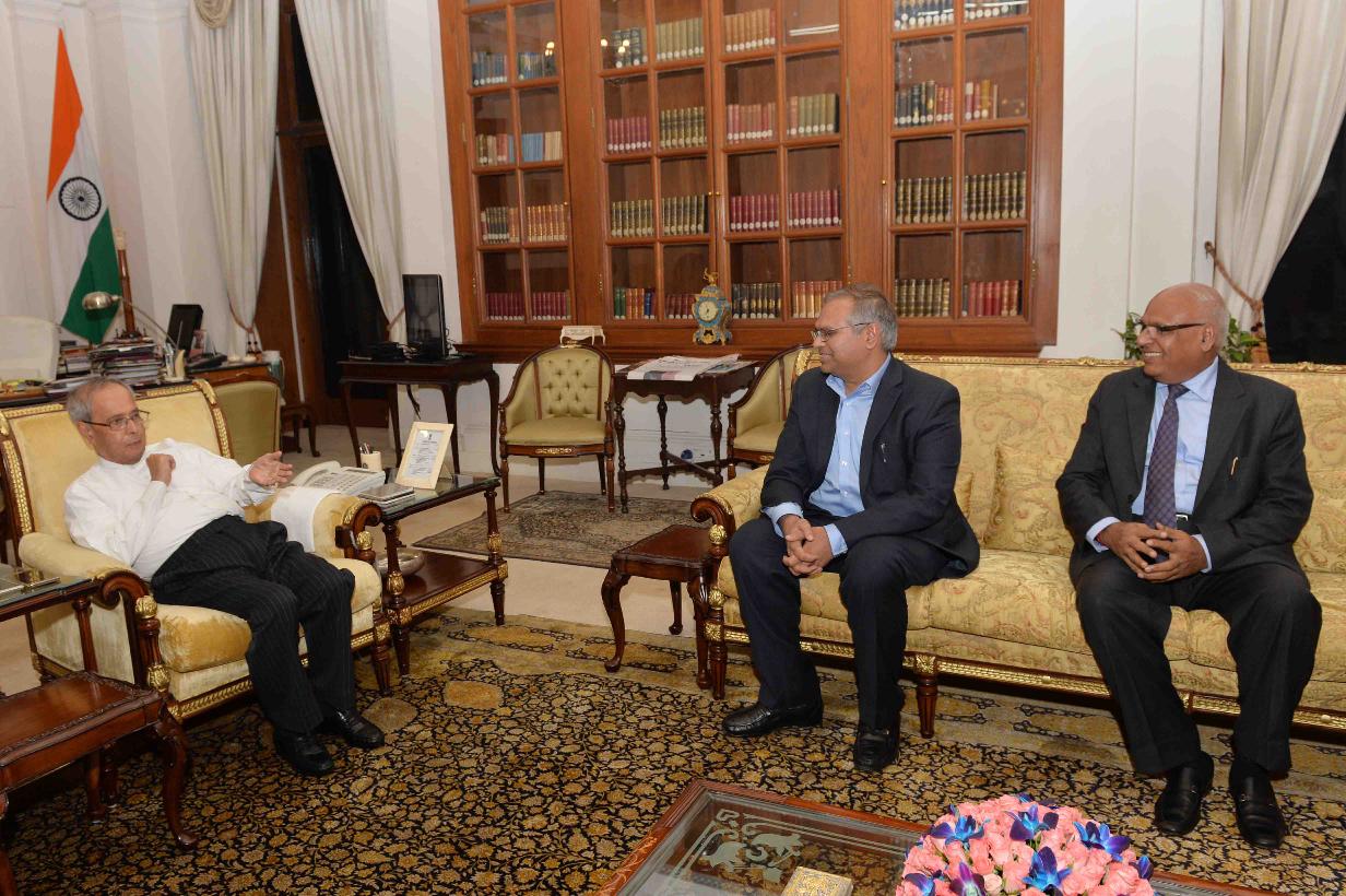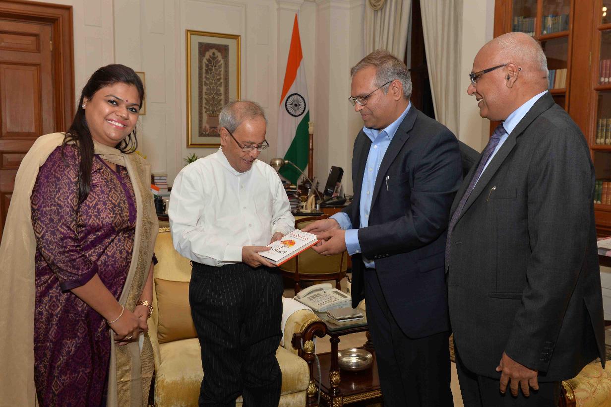 | Caption: | The President of India, Shri Pranab Mukherjee meeting with Shri Ravi Nawal, Dr. Ruchika Nawal and Shri SK Roongta, former Chairman, SAIL and receiving a book 'India Can', at Rashtrapati Bhavan on January 28, 2016. |