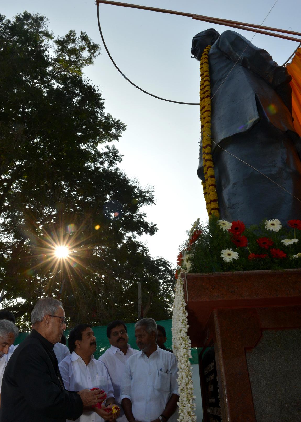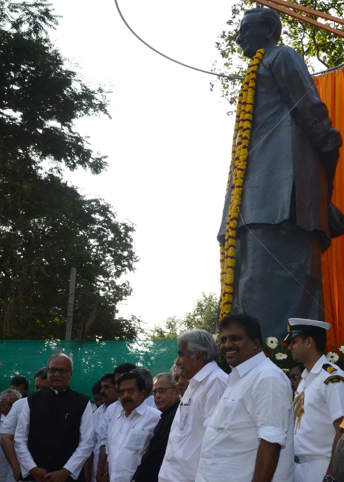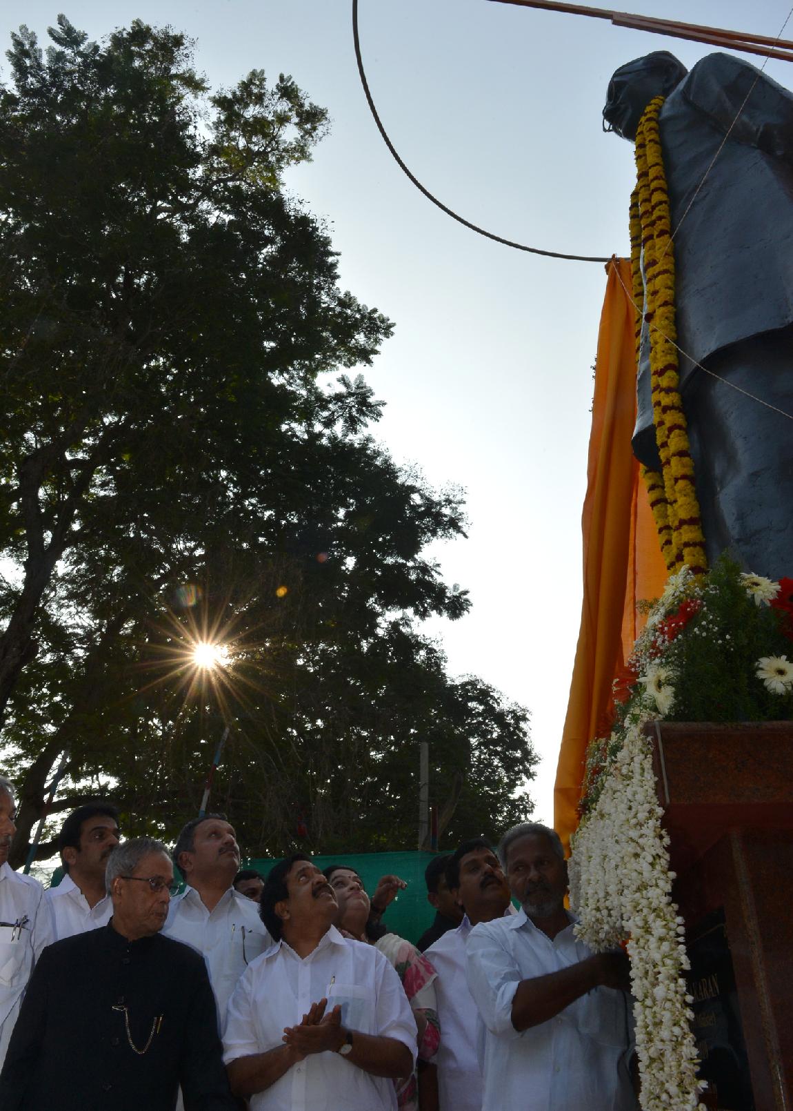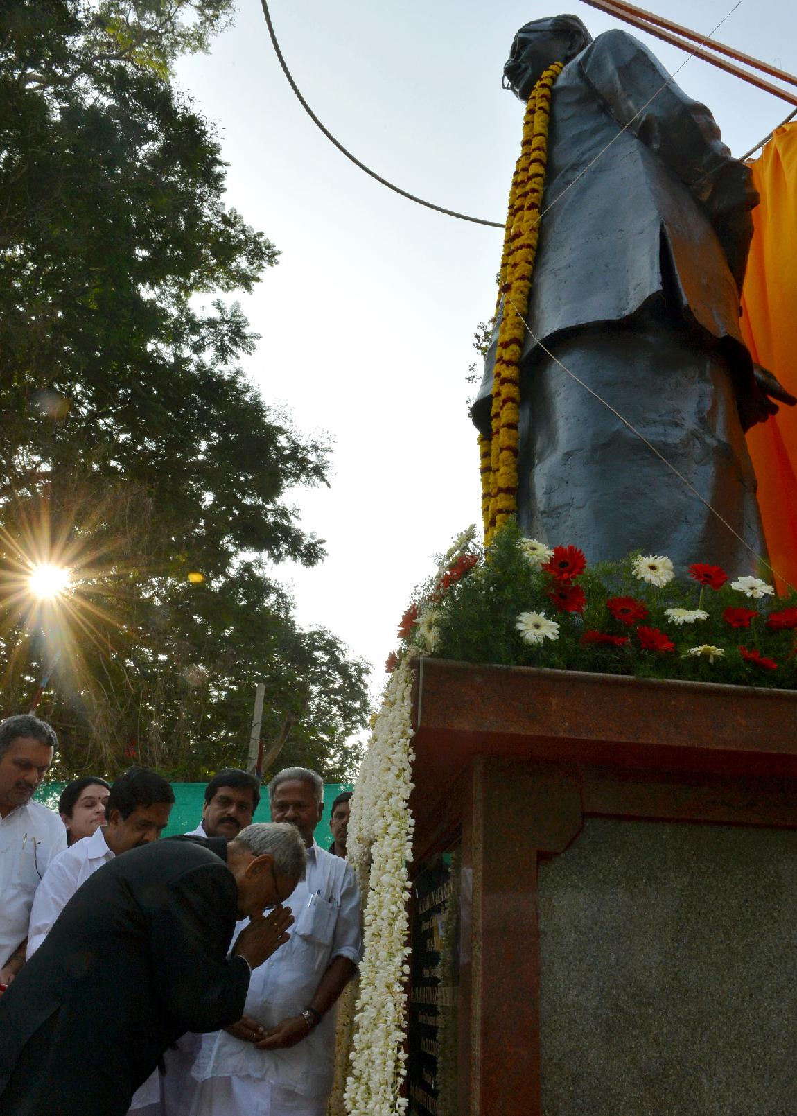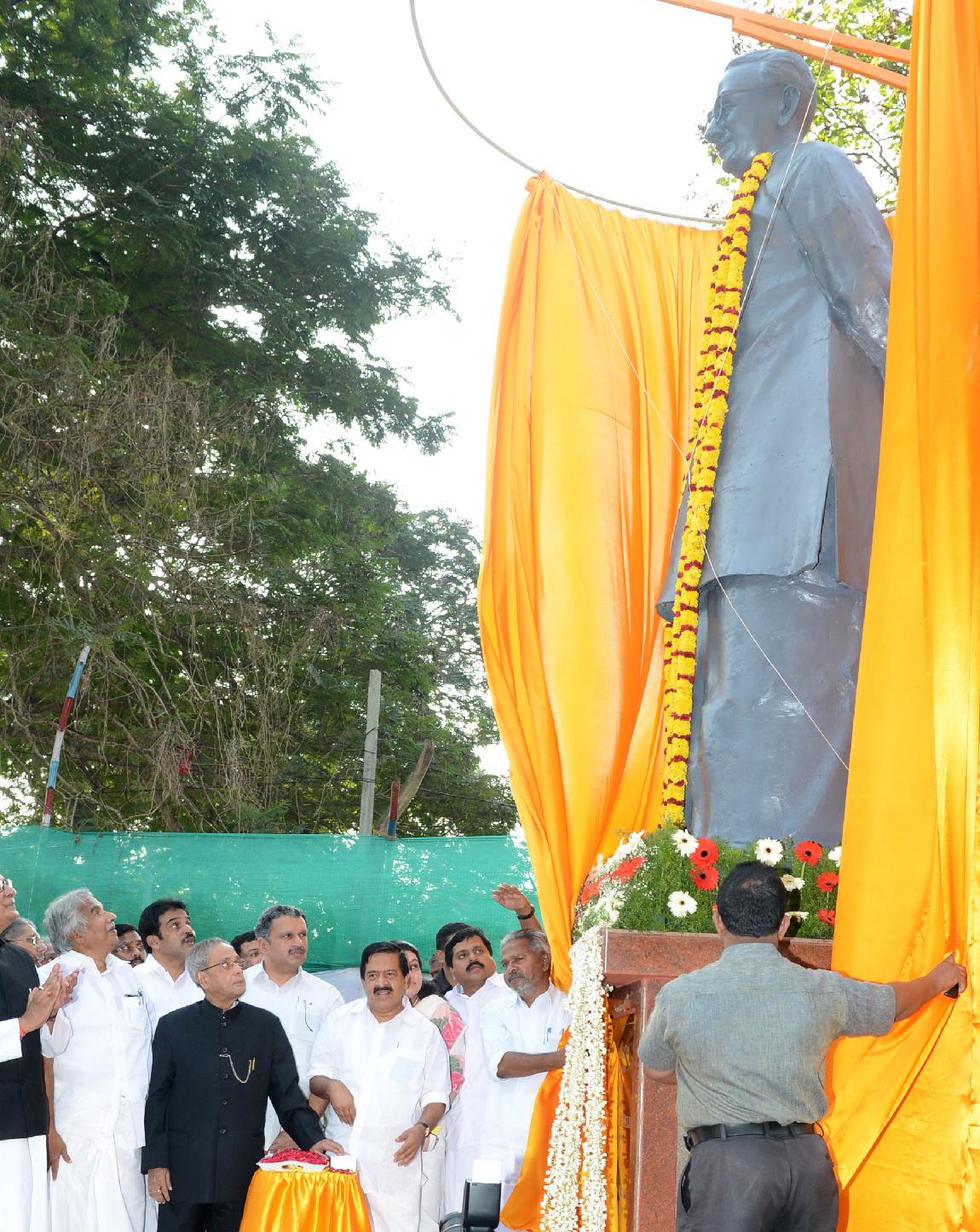 | Caption: | The President of India, Shri Pranab Mukherjee unveiling a Bronze Statue of the Former Chief Minister of Kerala, Late Shri K Karunakaran by pressing of a Button at Kanakakunnu Palace of Thiruvananthapuram in Kerala on Dec 20, 2013 |