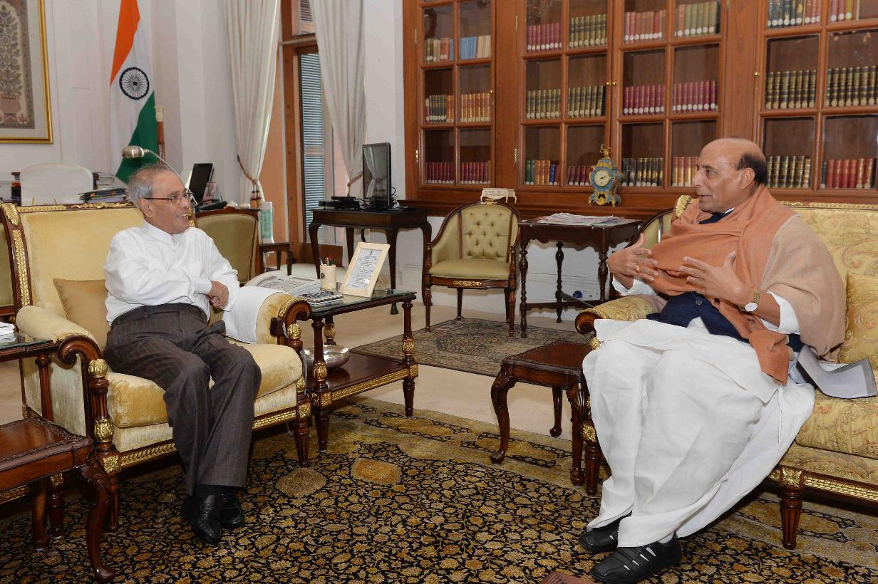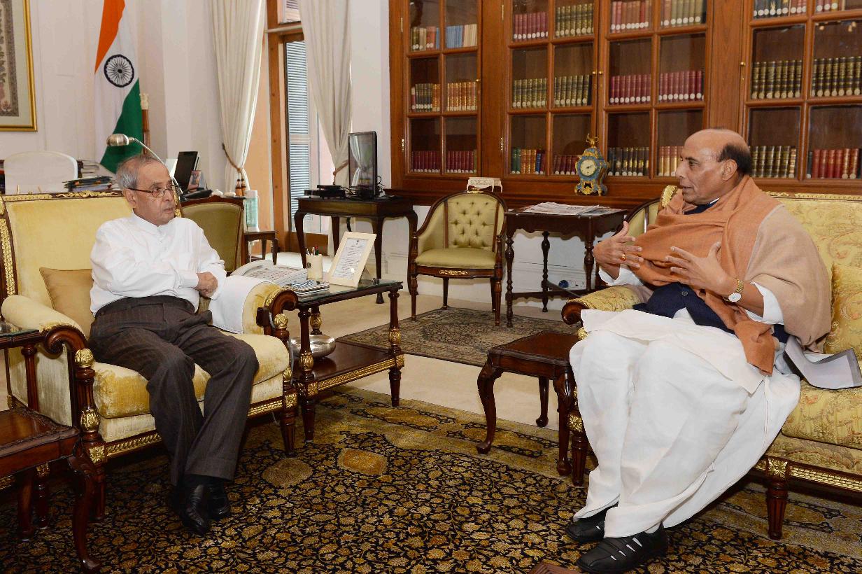 | Caption: | The President of India, Shri Pranab Mukherjee meeting with Shri Rajnath Singh, Minister of Home Affairs, at Rashtrapati Bhavan on January 25, 2016. |