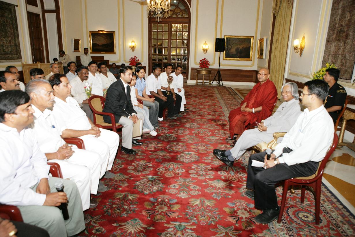| Caption: | The President of India, Dr A P J Abdul Kalam interacting with the Delegation from the Ambedkar Yuva Vichar Manch, Nabi Karim |