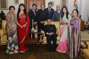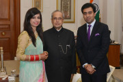 | Caption: | The President of India, Shri Pranab Mukherjee meeting with Shri Kapish Mehra with others, at Rashtrapati Bhavan on February 03, 2016. |