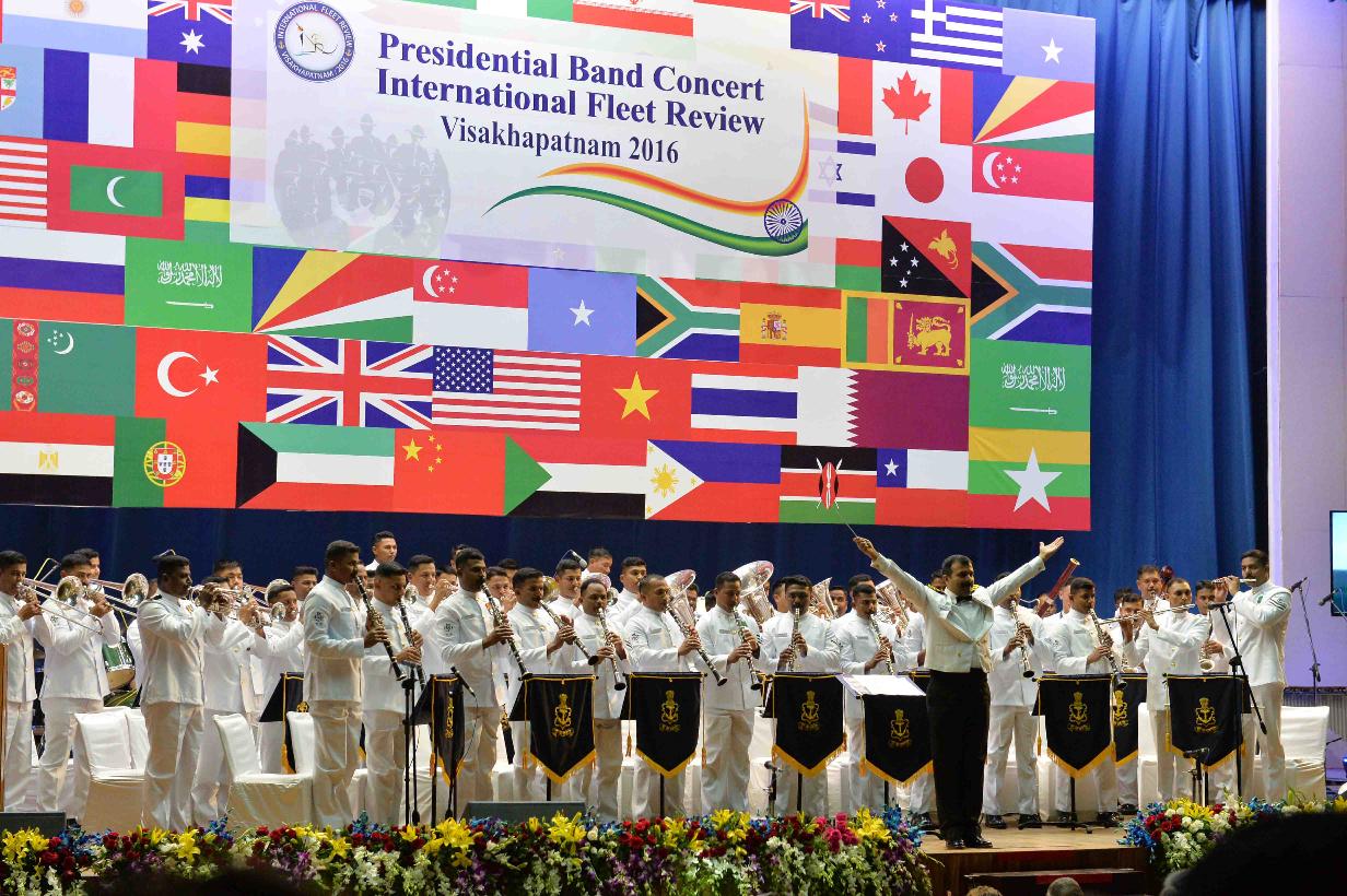 | Caption: | The President of India, Shri Pranab Mukherjee witnessing the Naval Band Concert and felicitating Band Master, on the occasion of International Fleet Review 2016, at Visakhapatnam, in Andhra Pradesh on February 06, 2016. |