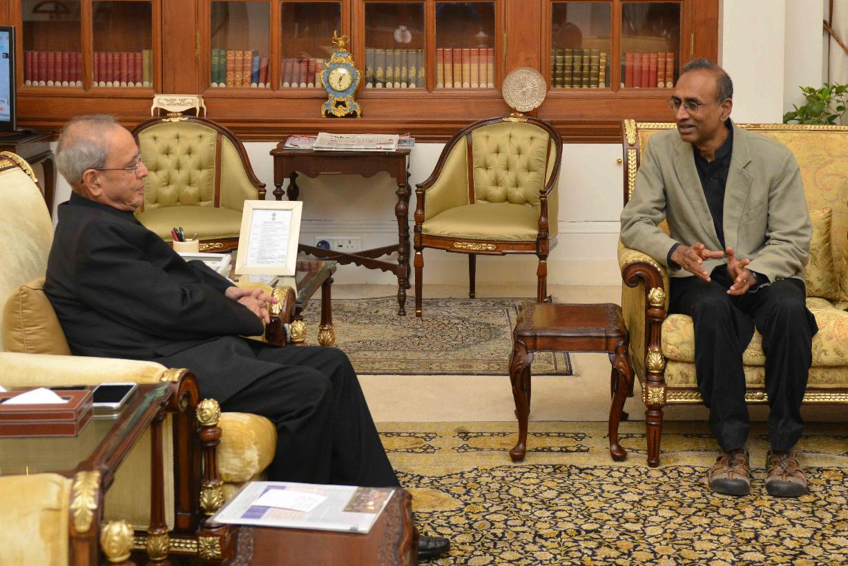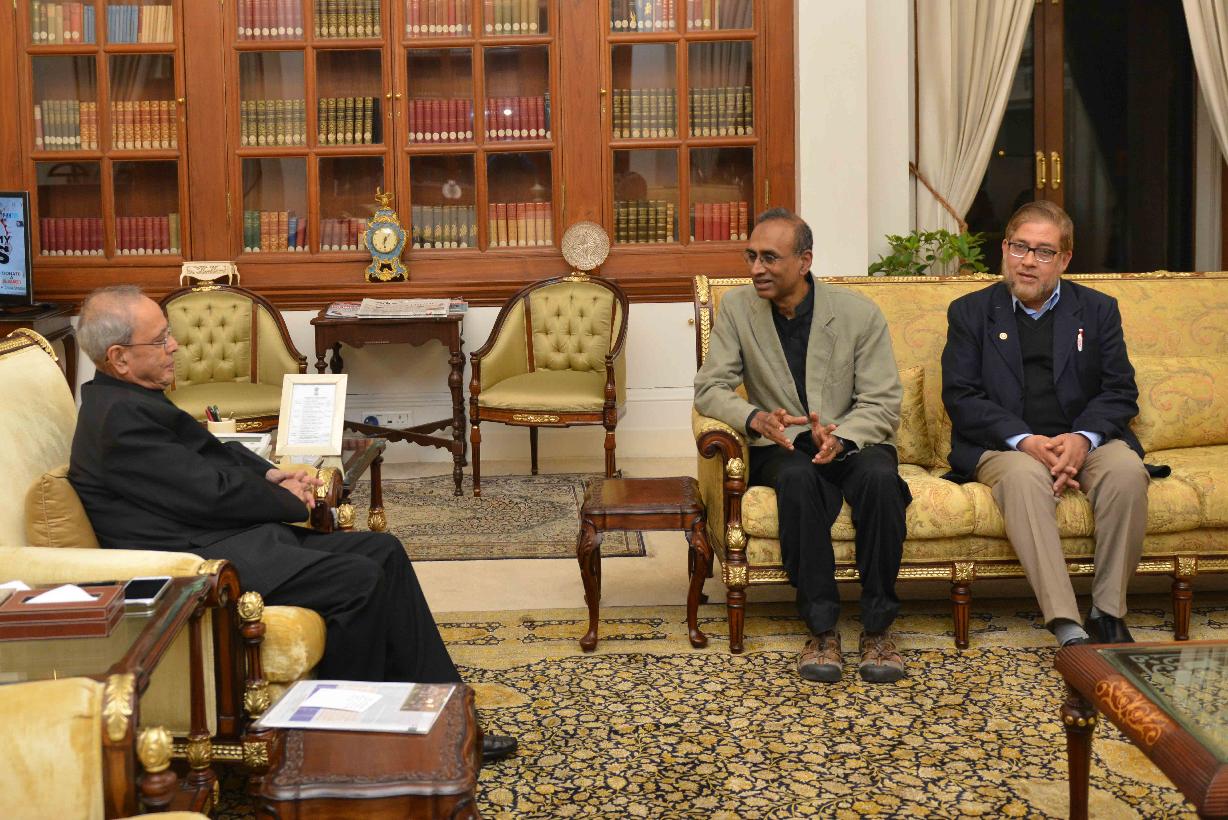 | Caption: | The President of India, Shri Pranab Mukherjee meeting with Prof. Sir Venkataraman Ramakrishnan, Nobel Laureate & President, The Royal Society, London along with Prof. Raghavendra Gadgkar, President Indian National Science Acamemy, at Rashtrapati Bhavan on January 08, 2016. |